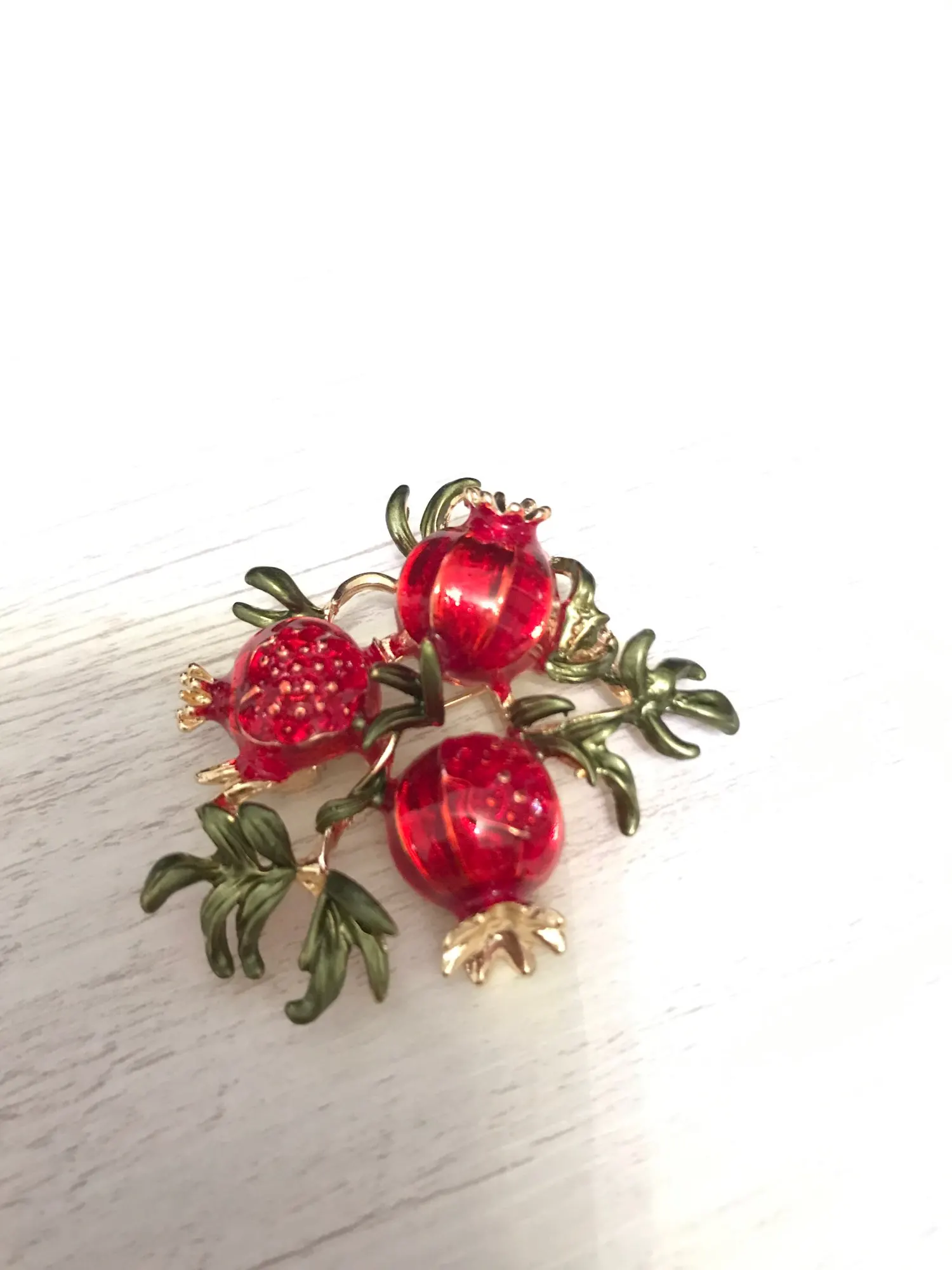 Женская брошь в форме фруктов, красная гранатовая брошь, модный эмалевый