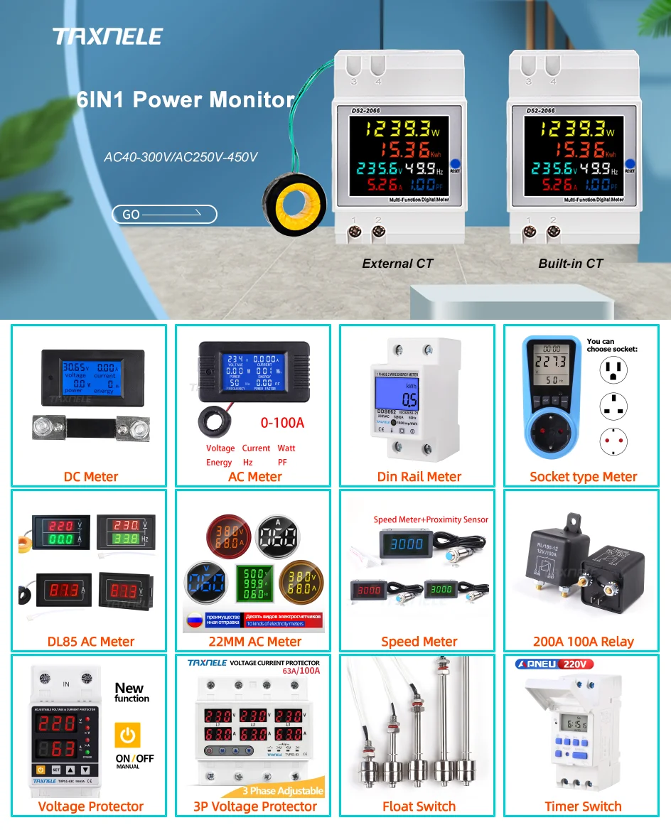Однофазный двухпроводный ЖК-дисплей, ваттметр, потребляемая мощность, электрический счетчик, кВтч, 230 В переменного тока, 50 Гц, Электрический Din-рейка