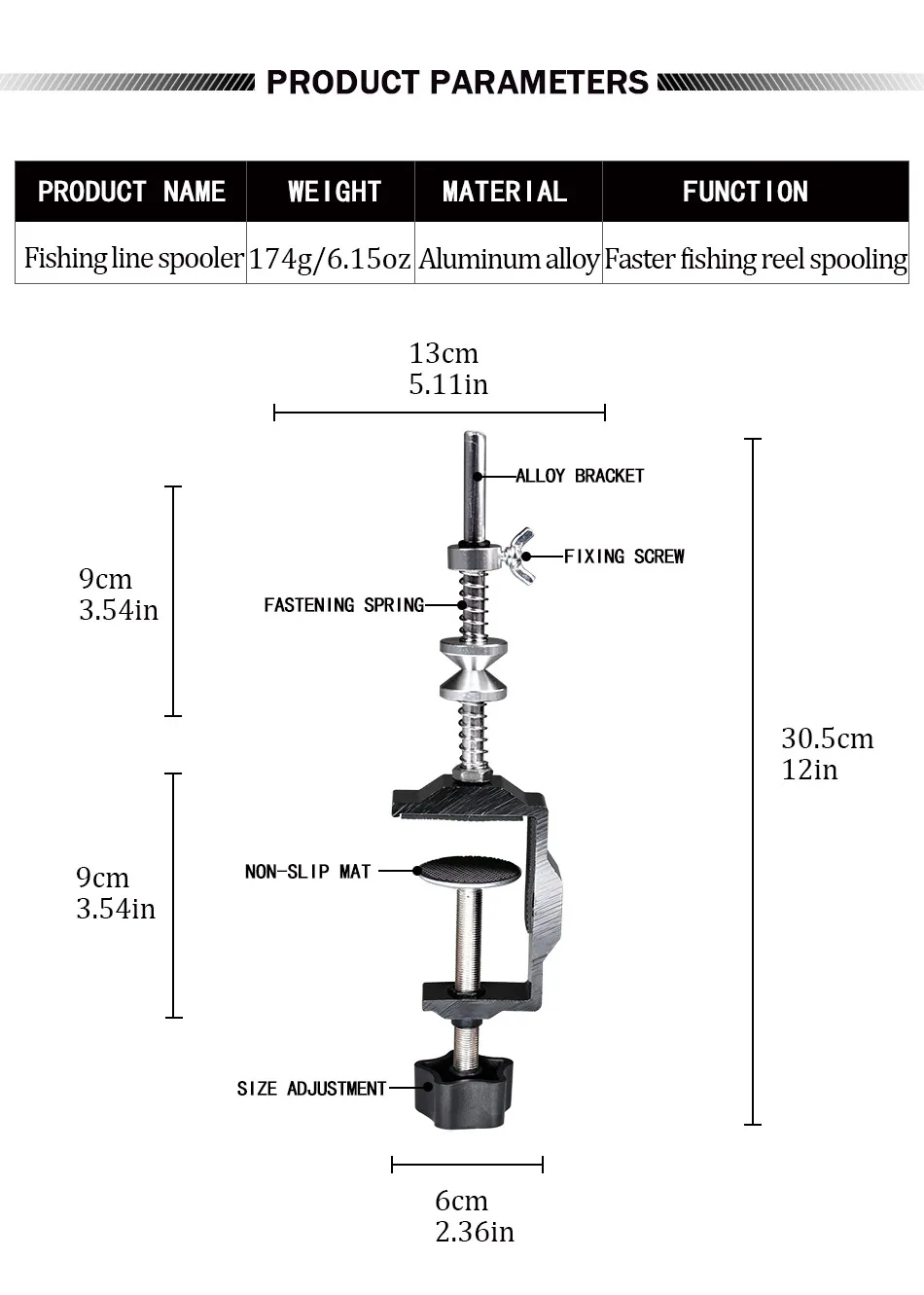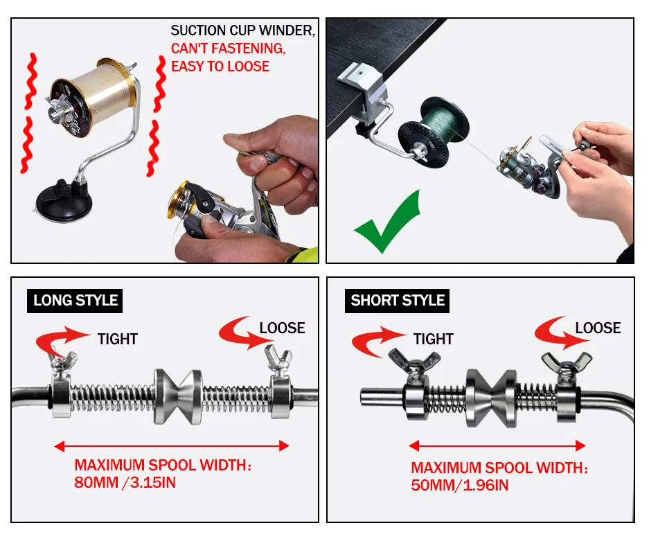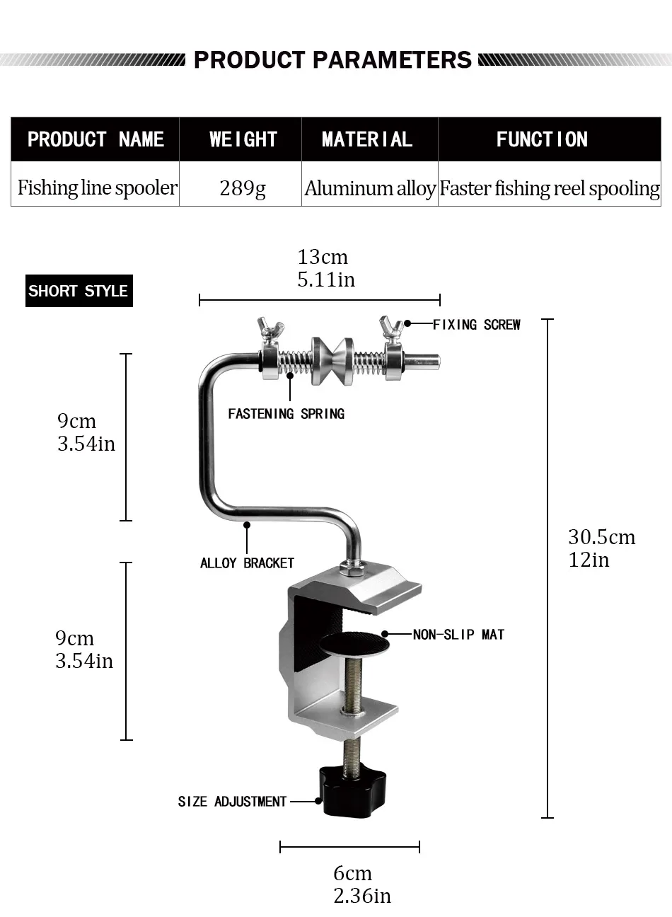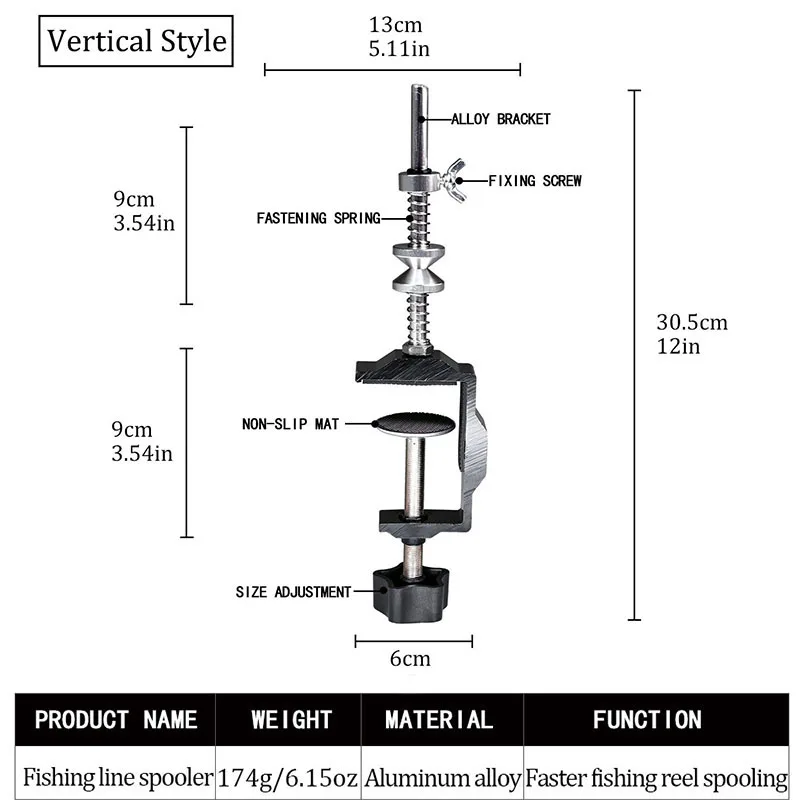 Намотчик лески с зажимом, система намотки вертикальной изогнутой лески