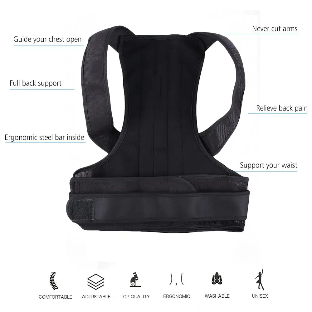 Регулируемый Черный Корректор осанки для спины, плечевой, поясничный бандаж для позвоночника, поддерживающий пояс, забота о здоровье для мужчин, женщин, мужчин, унисекс
