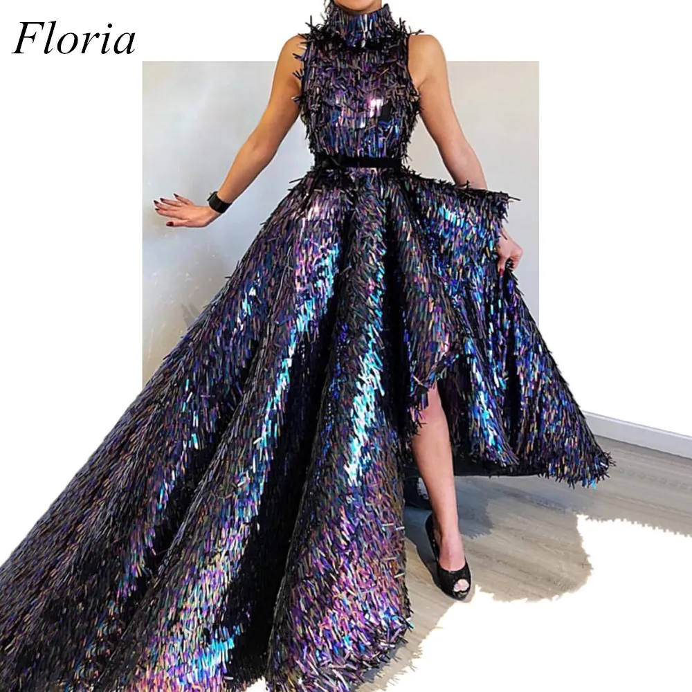 Новое поступление, специальные платья знаменитостей 2019, асимметричные платья с высоким воротом без рукавов и блестками, вечерние платья в Дубае для выпускного вечера и вечеринки, платья с красным ковром