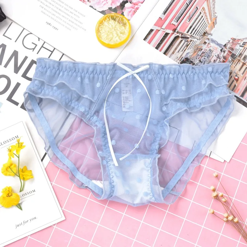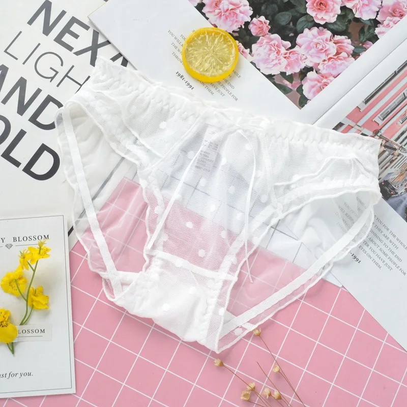 Сексуальное ажурное Сетчатое нижнее белье с принтом в горошек, прозрачные дышащие женские трусики с низкой талией, милые трусики с оборками и бантом для девочек