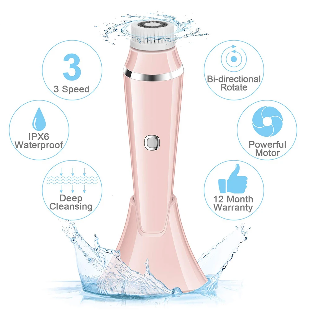 Щетка для чистки лица, перезаряжаемая, водонепроницаемая, с 4 насадками