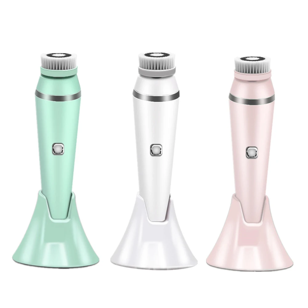 2020 год, новый дизайн 4-в-1, прибор для лица Bruah с базой для хранения, прост в применении, беспроводная перезаряжаемая мягкая машина для чистки лица, ежедневная очистка лица, скраб и массаж, очищение, отшелушивающая кисть