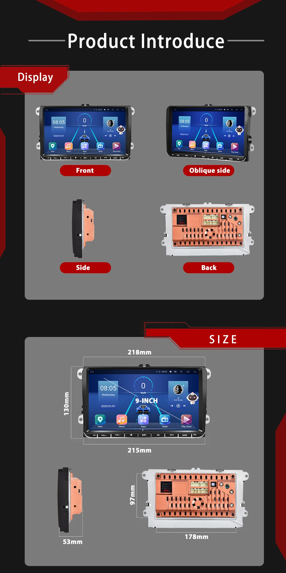 For Vehicle BrandsFor VW Android 9.0/8.1 2 din Car Audio