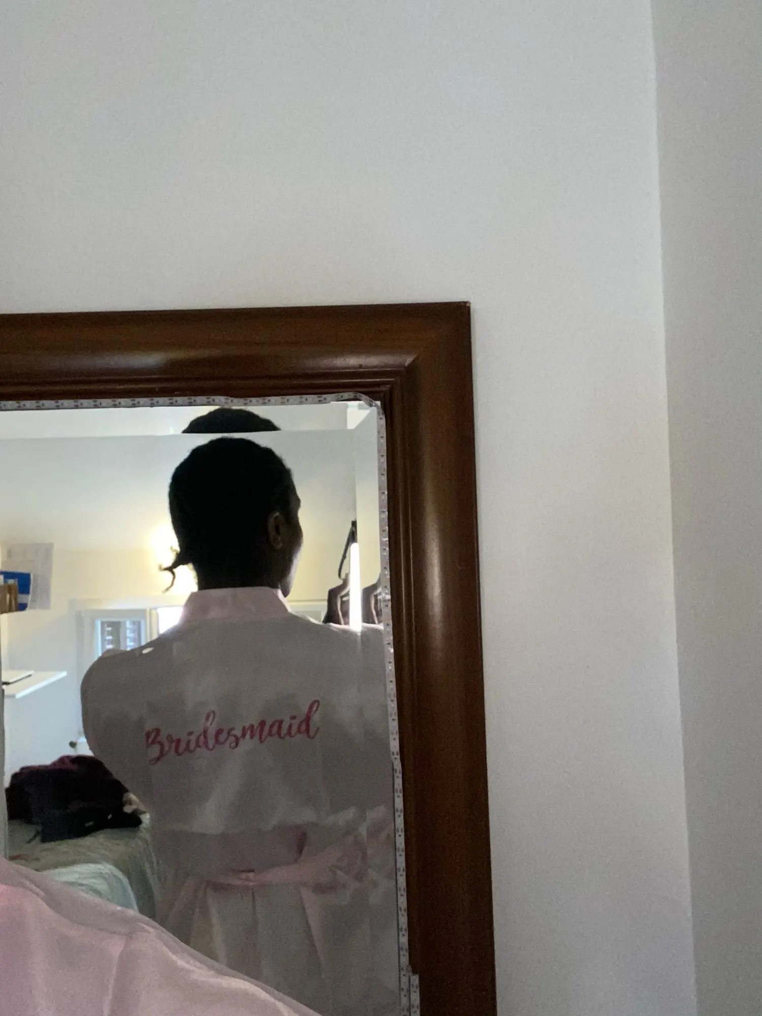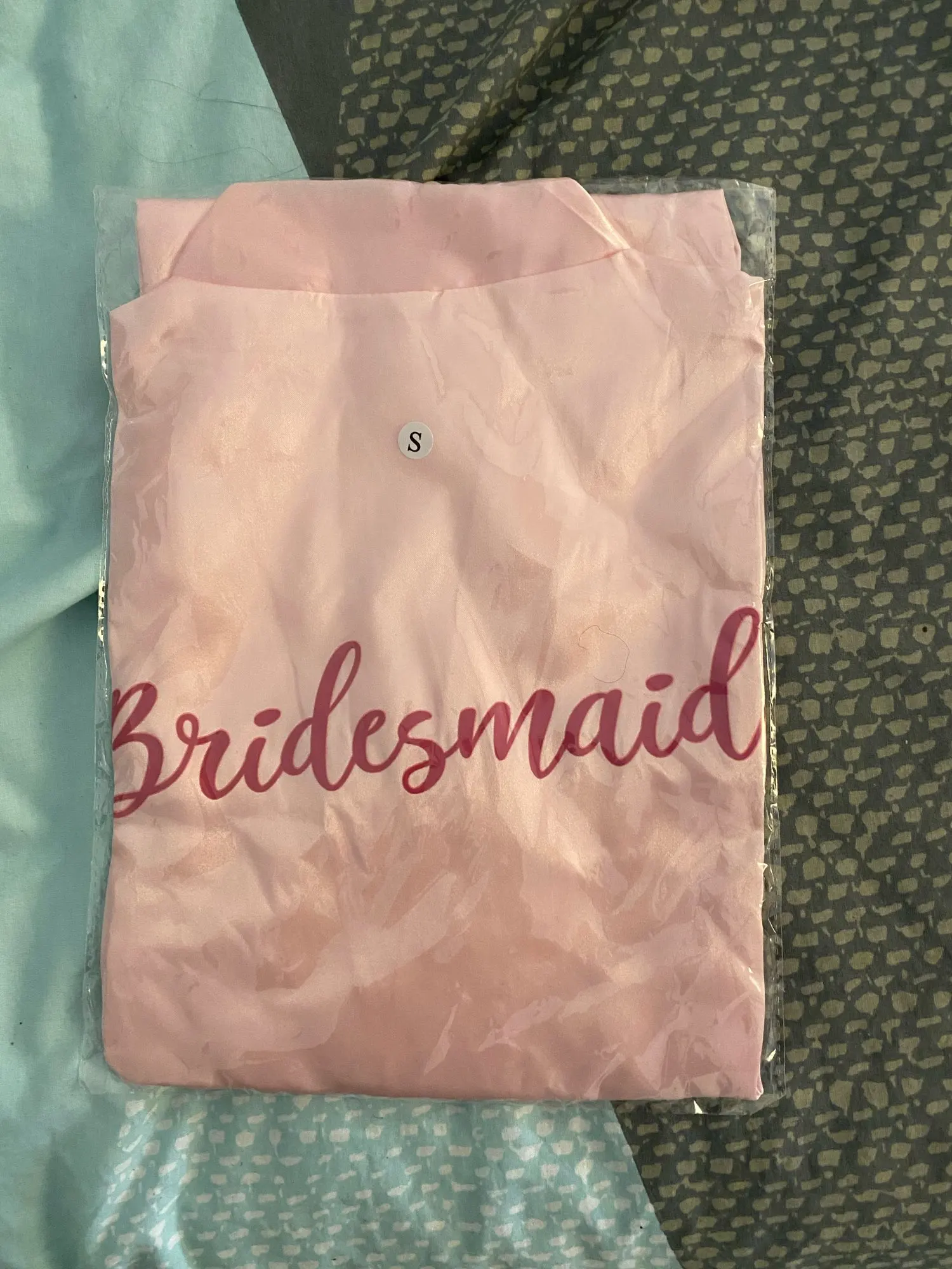 Arrivé plutôt que prévu ! La couleur est plus rose que satin rose donc pas vraiment semblable à l’image. Mais top assez grand pour ma part j’ai pris le S et je le trouve grand (je fais 1m81) si ça peut vous donner une idée. Il a un petit cadeau à l’inter du paquet un petit bracelet