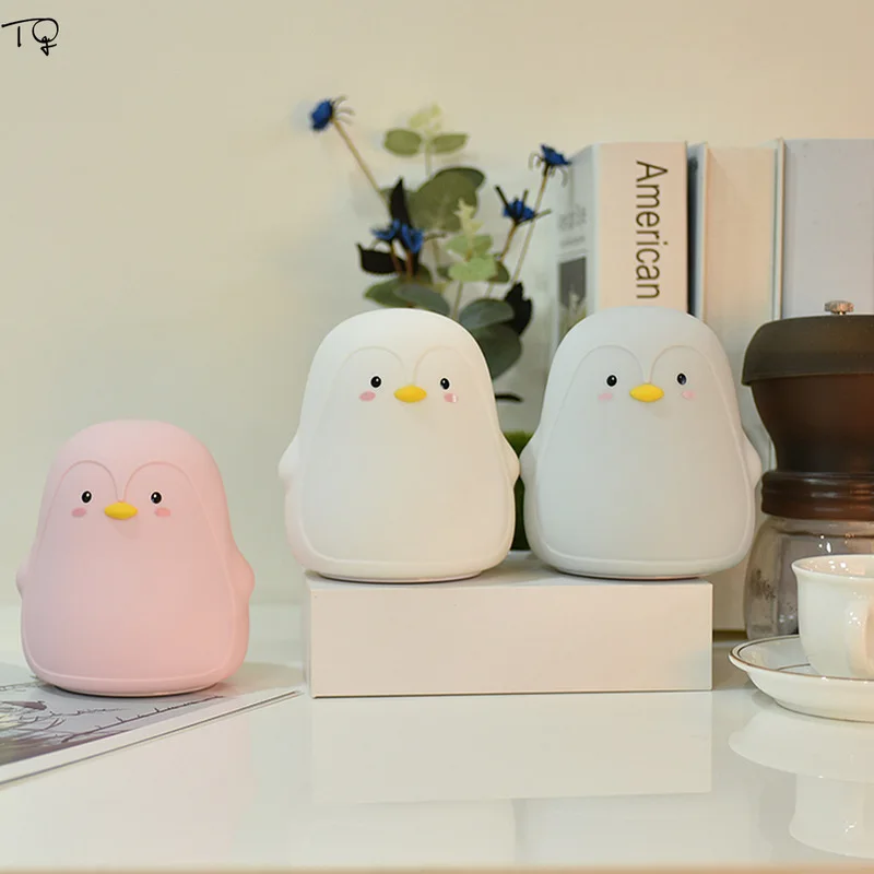 Силиконовый ночник с милым пингвином, светодиодный ночник с USB-зарядкой и переключателем, с защитой для глаз, прикроватная тумба, подарок на день рождения