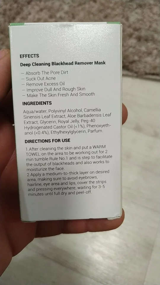 Разочарован. Искал средство для сужения пор на носу, а это оказалась обычная маска с листочками для удаления секрета сальных желез. Слова в описании товара были про сужение пор, в инструкции и на упаковке об этом - ни слова. Аналогов таких чистящих штук на Али пруд пруди, и относительно прочих конкретно этот продукт - ничем не выделяется. Не могу рекомендовать.