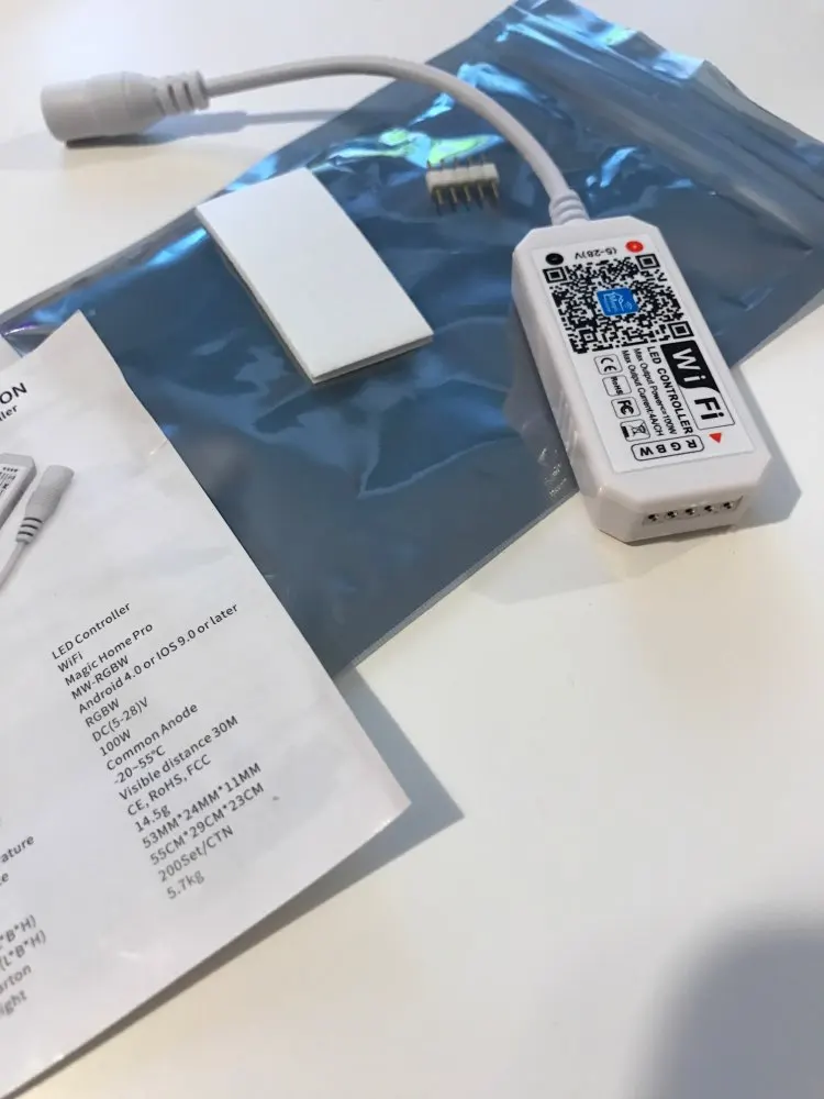 После установки приложения, включения bluetooth и Wi-Fi, совместного использования местоположения, было возможно подключение к устройству. Минус для пульта дистанционного управления, который не поддерживает отдельные линии белого цвета, но только белый цвет в комбинации RGB. Я рекомендую этот магазин и с наилучшими пожеланиями.