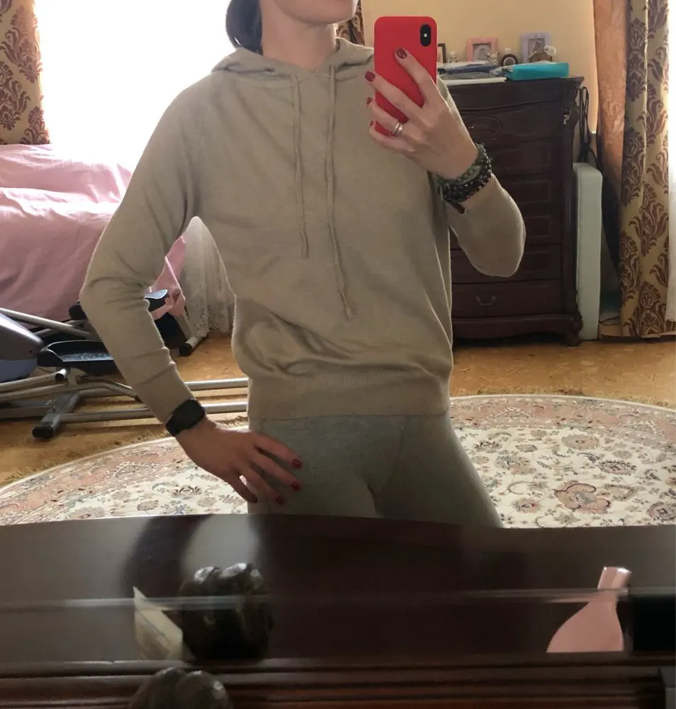 Отличная худи! Приятная на ощупь, качественная! Размер L взяла на 44, хорошо сел - свободно, рукава отлично!