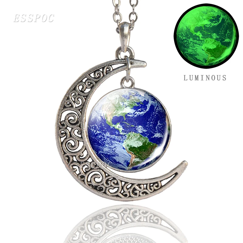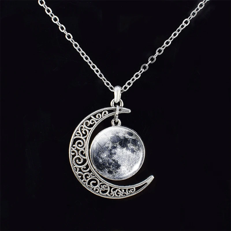 Женское Ожерелье с кабошоном, ожерелье с изображением Луны, полумесяца, Солнечной системы, планеты, космоса, галактики, ювелирные изделия, Прямая поставка