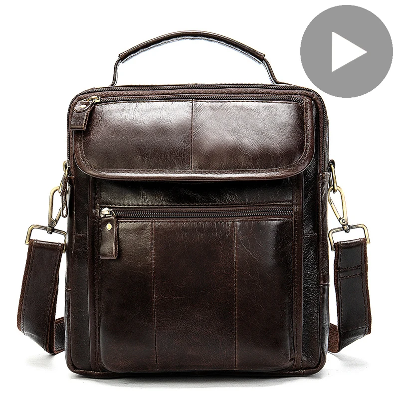 Сумка-мессенджер мужская из натуральной кожи, коричневая, небольшая
