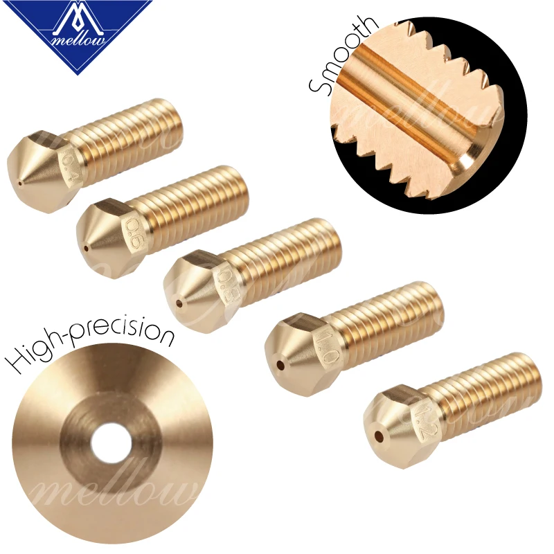 1 шт., латунная удлиненная экструдерная насадка Mellow 0,4-1,2 мм для 3D-принтера 1,75 филамента Volcano Hotend