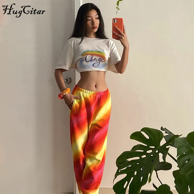 Брюки-багги Hugcitar хлопковые, свободные штаны-карго с завышенной талией для фитнеса, уличная одежда, осень-зима 2019