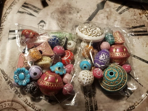 посылка приехала быстро. бусины симпатичные. не очень много, конечно.Хотелось побольше по количеству. с большими отверстиями, как нужно.