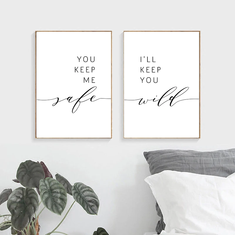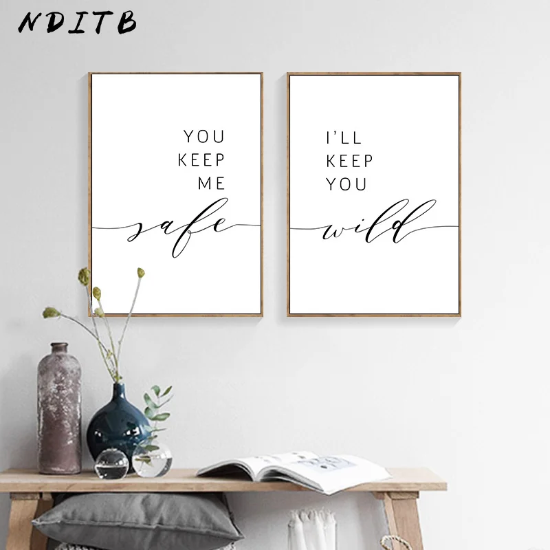 Любовь пары цитаты настенная картина черно-белый плакат настенная печать искусство держите меня в безопасности я буду держать вас в природе
