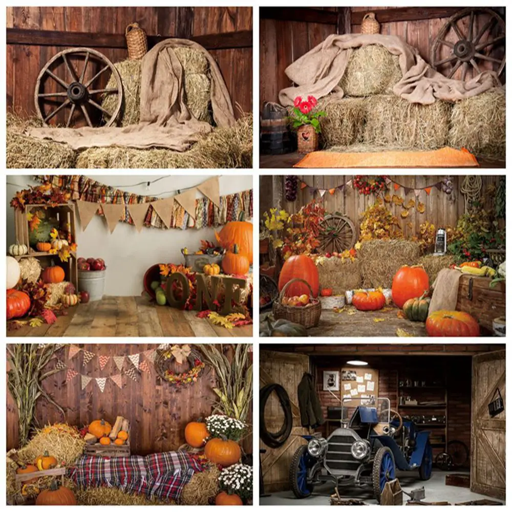 Фон Yeele для фотографий с изображением фермы, сарая, сена, Старый трактор