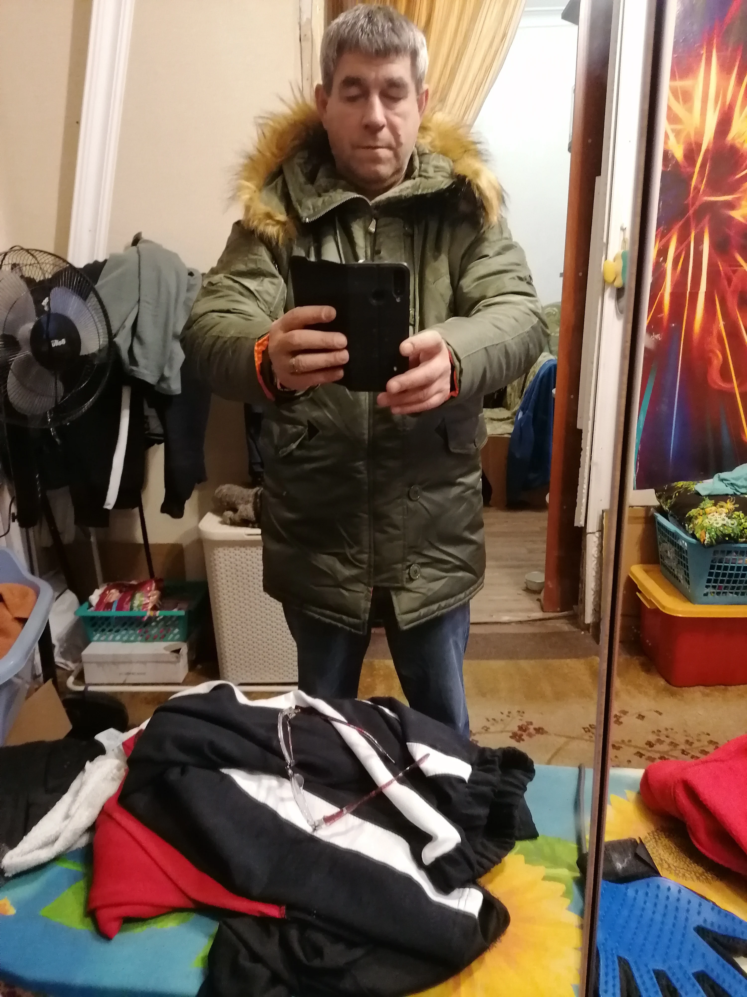 Получили заказ очень быстро, 10 дней и курточка уже у нас. К сожалению, начиталась отзывы и заказала мужу маленькую. Как хотела и надо было заказывать на 90 кг и 52-54 размер XXL?: Теперь придётся продавать и снова заказывать. Ещё маленький штрих. Мех на воротнике не застёгивается, прислали немного бракованную. Липучка только с одной стороны пришита. В остальном продавца рекомендую. Куртка толстенькая и очень тёплая. Спасибо.