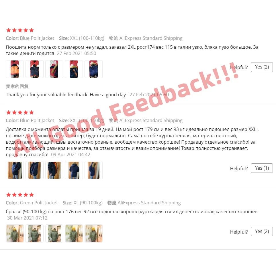 Пришла бракованная куртка! Кнопки воротника были установлены другой стороной! Или планка пришита наоборот. Открыл спор на возврат части денег. Приложил фото. Аргументы продавца - фабрика говорит, что это НОВЫЙ ДИЗАЙН! Блин, нафик нужен такой дизайн! Но Али почему то встали на сторону продавца. Спор проиграл. Хотя на фото всё видно. Даже приложил фото сравнения с нормальной курткой (чёрного цвета) купленной ранее и указал разницу! Так что теперь, берём тут куртки на свой страх и риск! Пошли бракованные куртки и есть шанс попасть на "новый дизайн"! До этого брал здесь курки, были нормальные (поэтому знаю о чём говорю)! Всегда ставил 5 звёзд! Сейчас получил брак. Можно конечно было вернуть и взять ещё одну... Но не факт, что попадётся такая же! Возможно это специально сделаны изменения , чтобы было отличие от Альфы..... Х. З. Вообщем, если сможете переставить кнопки или перевернуть и перешить всю планку.... Или носить её без опушки.... Покупайте. В ином случае не рекомендую!