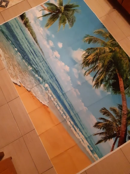 Покупал как задний фон для аквариума. Всё нормально, если не считать сильные складки в местах сгиба. Разглаживание утюгом не дало 100% эффект. В принципе, эти складки заметны только в светлое время суток, поэтому это не слишком критично.