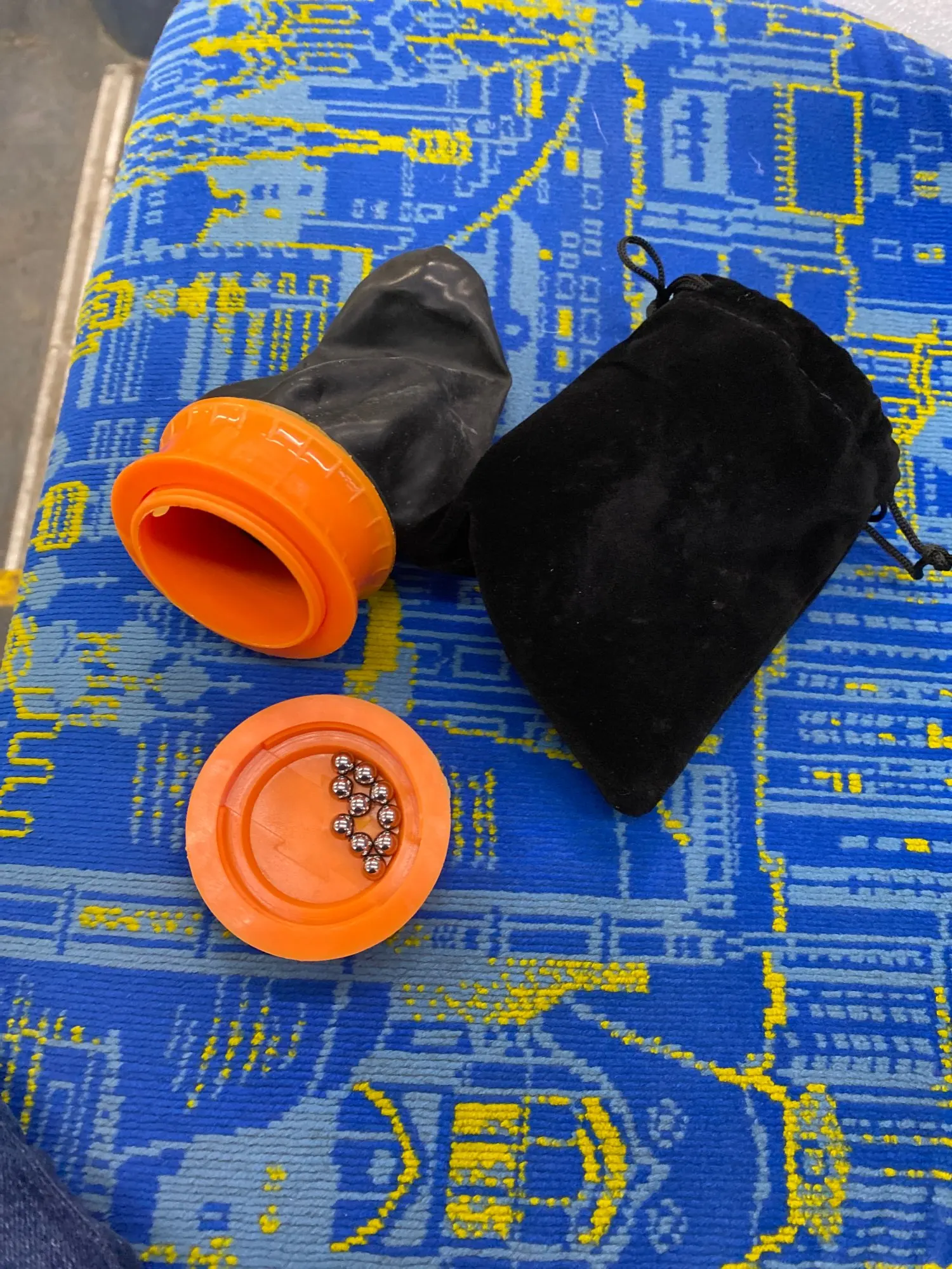Игрушка нормальная, в комплекте десять шариков диаметром 6 мм.
