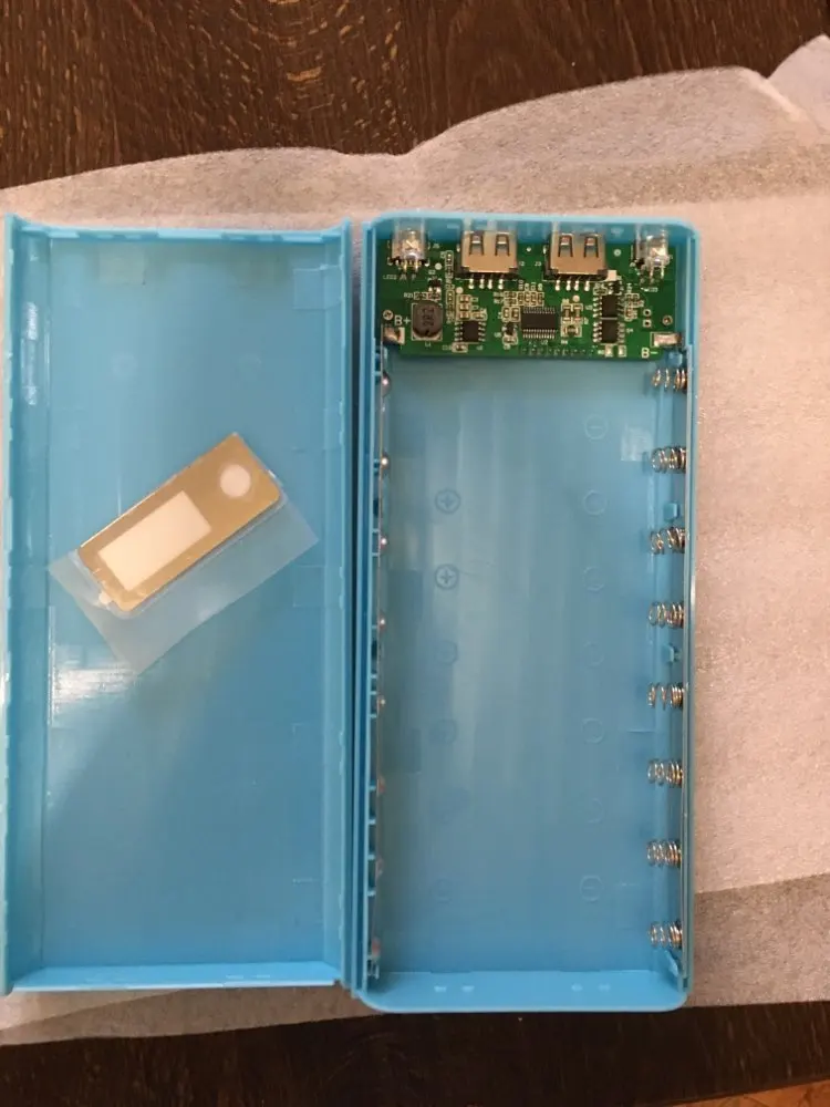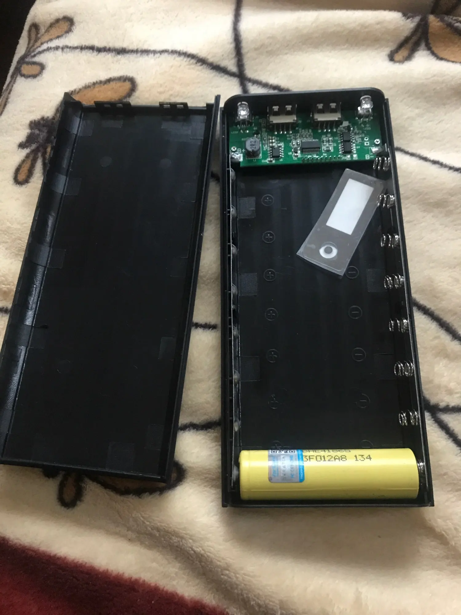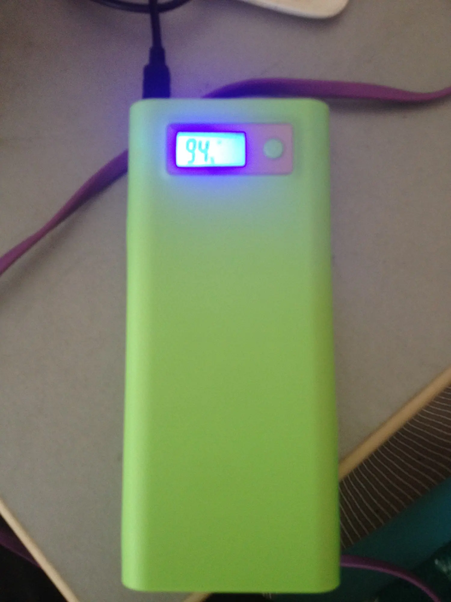 Как описано. Расчет процента, как только вы вставляете батареи 18659, не подключая powerbank.