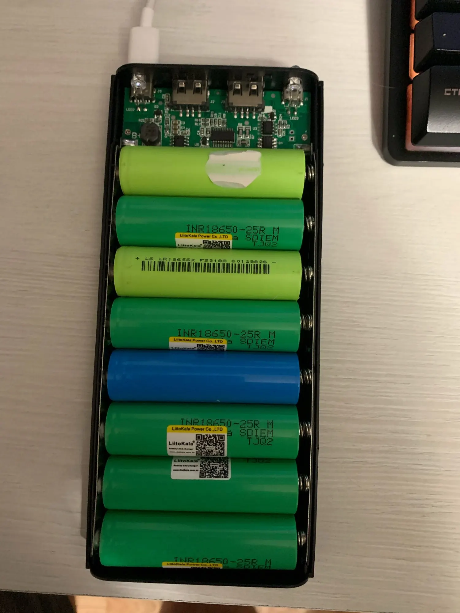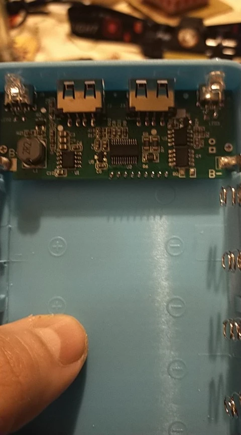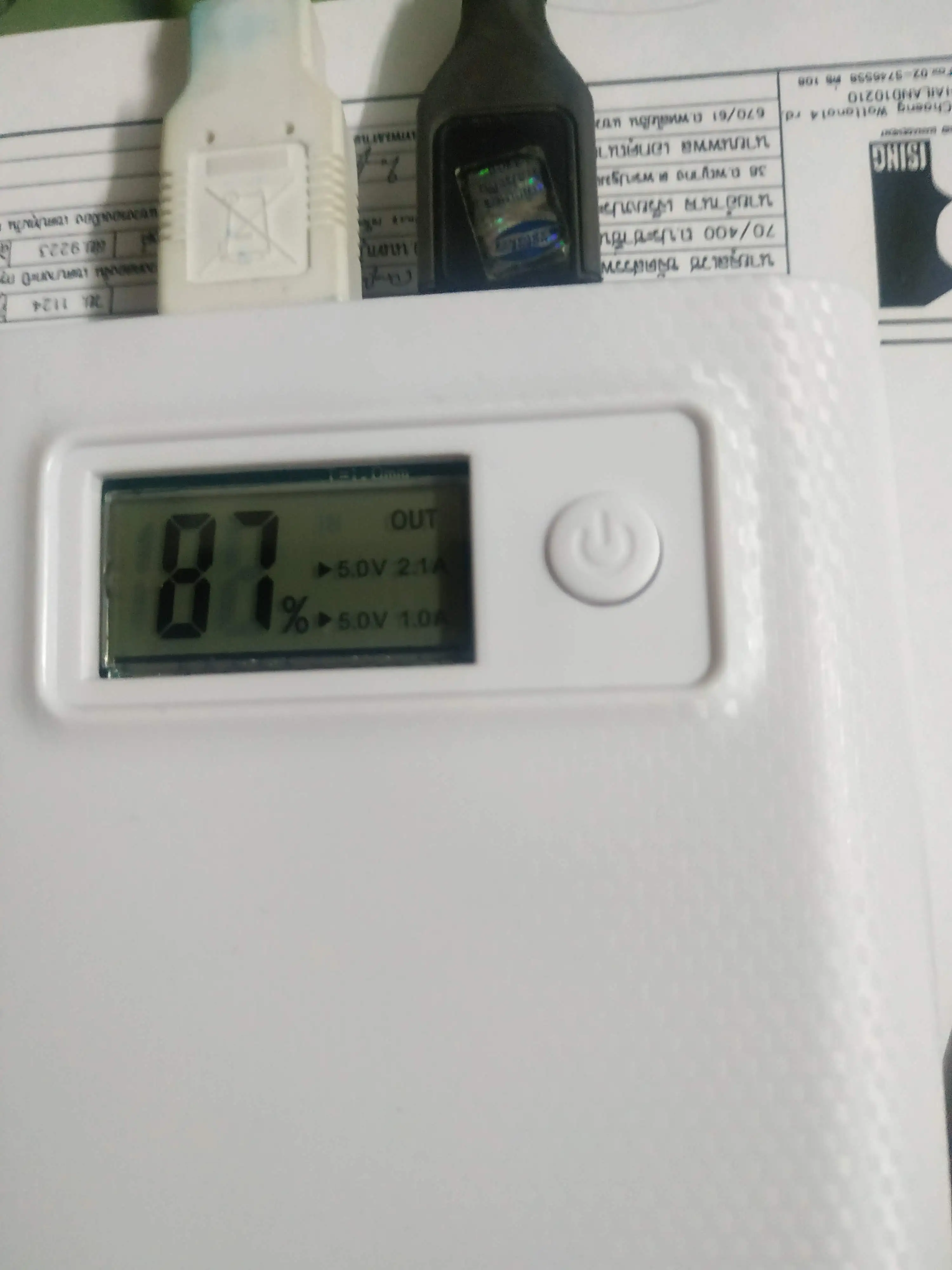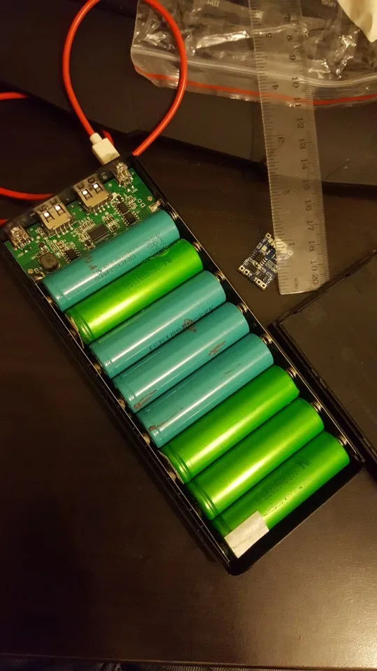 Как описано. Расчет процента, как только вы вставляете батареи 18659, не подключая powerbank.