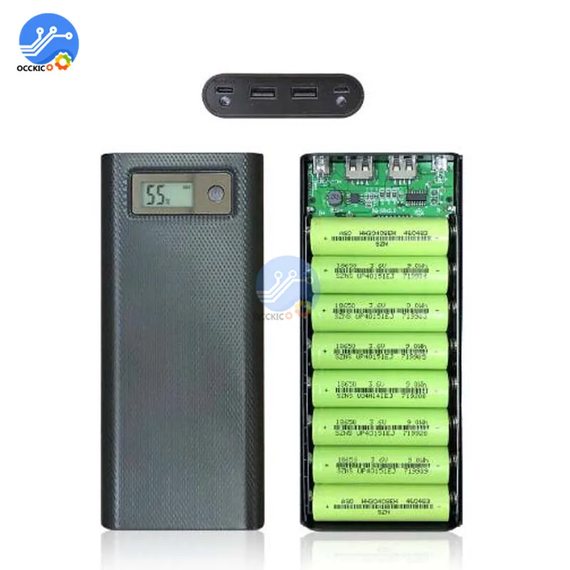 8x18650 батарея зарядное устройство коробка power Bank держатель Чехол Двойной USB lcd Цифровой дисплей 8*18650 корпус батареи Хранения Организовать DIY