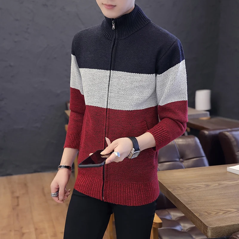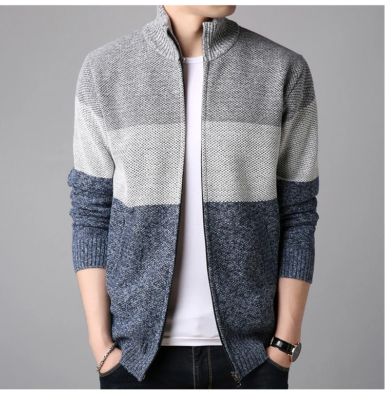 Новинка 2021, плотный модный осенний свитер для мужчин, кардиган, облегающие вязаные Джемперы, теплые Брендовые повседневные свитера в Корейском стиле для мужчин