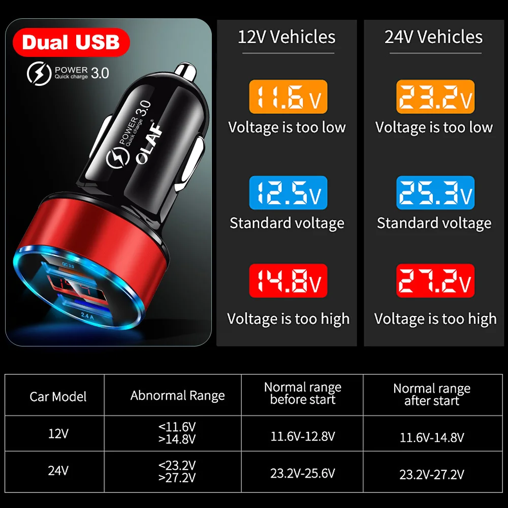 Olaf Быстрая зарядка 3,0 Автомобильное зарядное устройство портативное 5 в 3 А Быстрая зарядка двойной USB Автомобильное зарядное устройство для iPhone Samsung iPad USB зарядное устройство QC 3,0