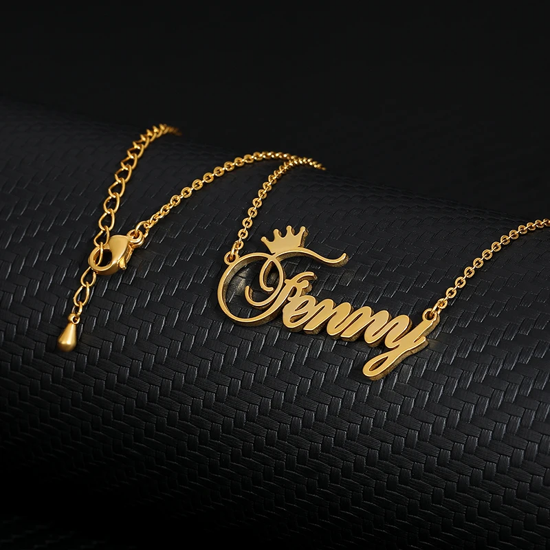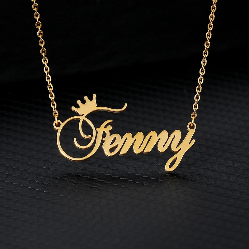 Персонализированная Корона шрифт пользовательское имя ожерелья для женщин мужчин золотой серебряный цвет нержавеющая сталь цепочка Кулон ожерелье ювелирные изделия