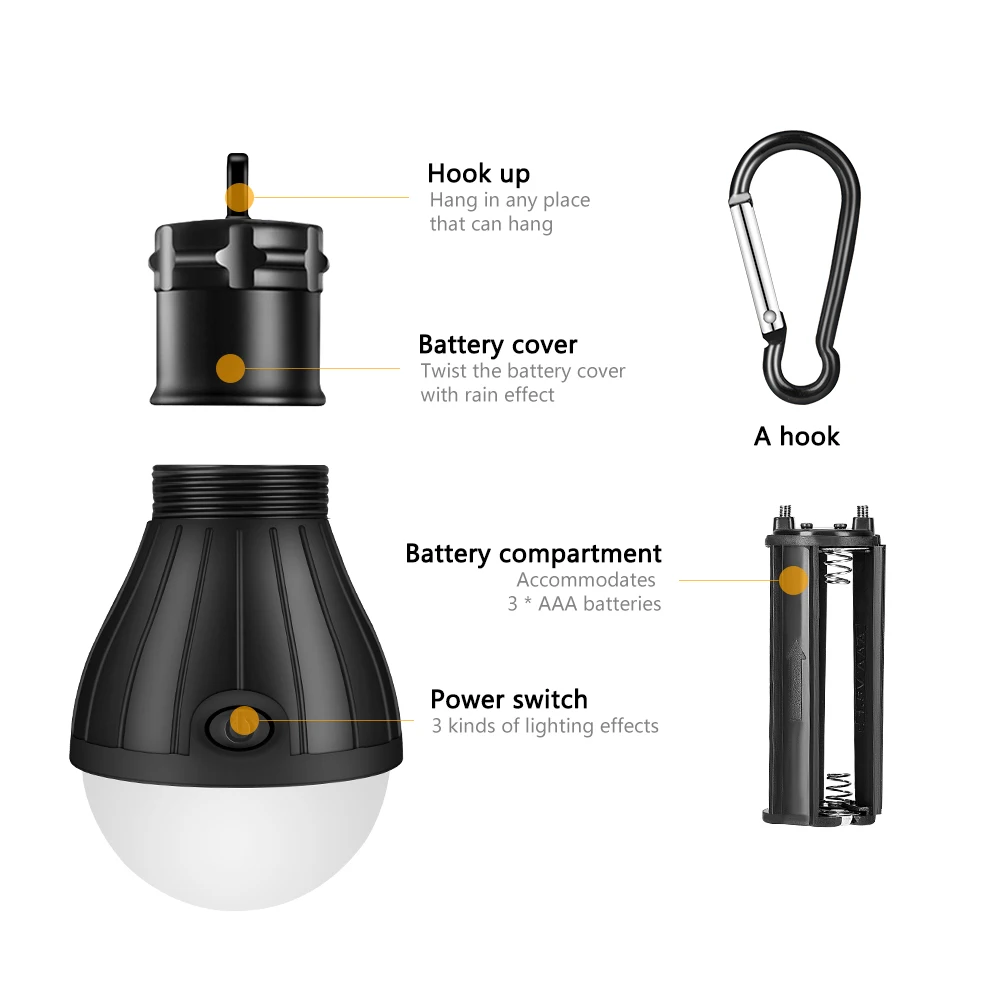 Портативный фонарь мини-палатка свет 3 режима Светодиодная лампа Аварийный Фонарь ручной рабочий свет водонепроницаемый подвесной крючок фонарик для кемпинга