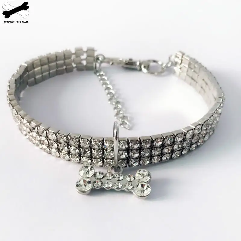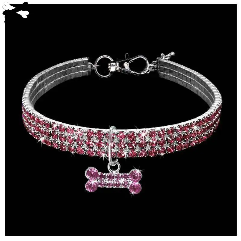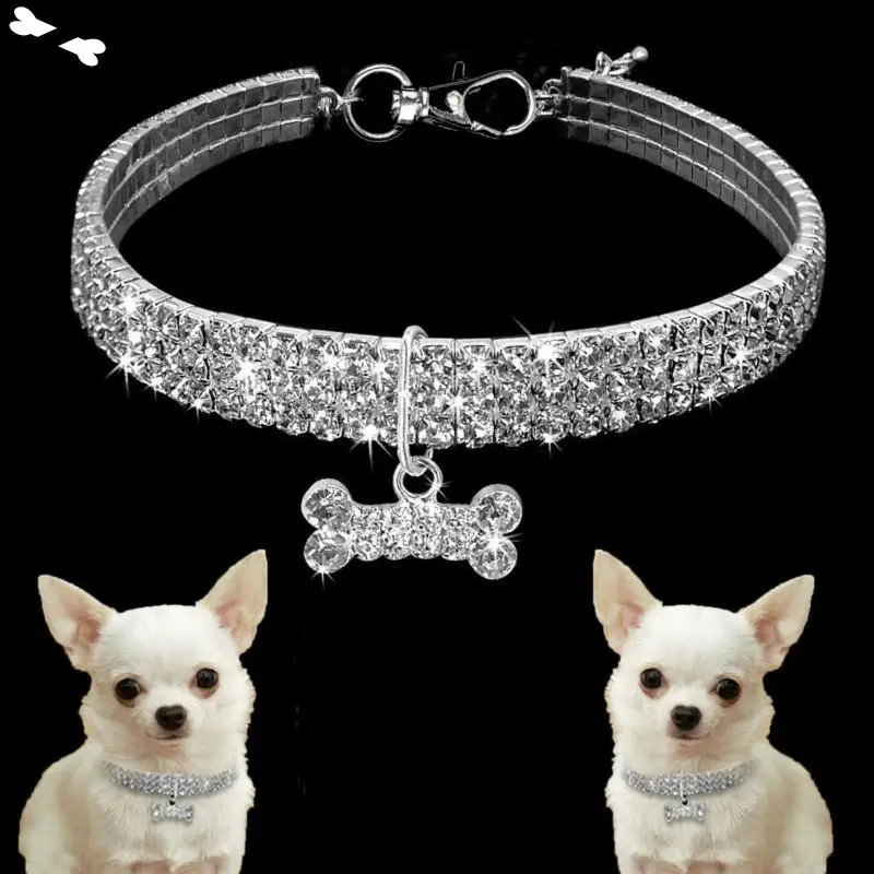 3 ряда Стразы стрейч линия ожерелья домашних животных собака кошка Кристалл Ошейники собаки аксессуары для животных принадлежности для животных ошайник