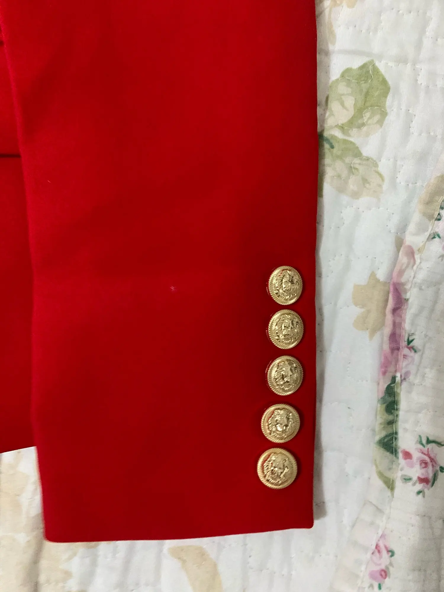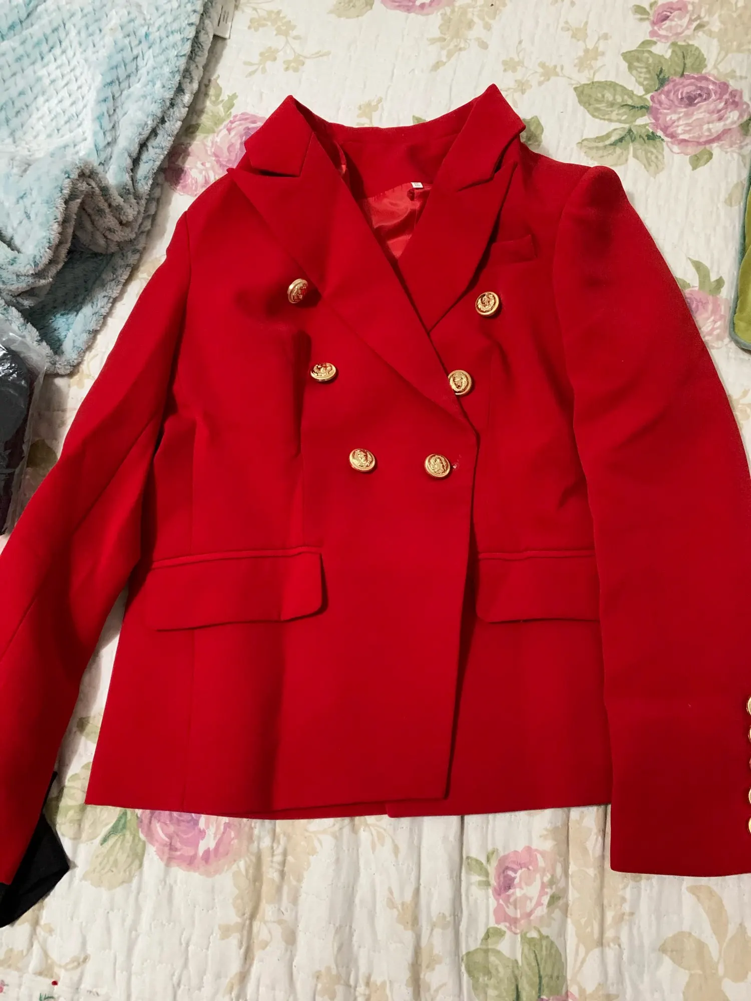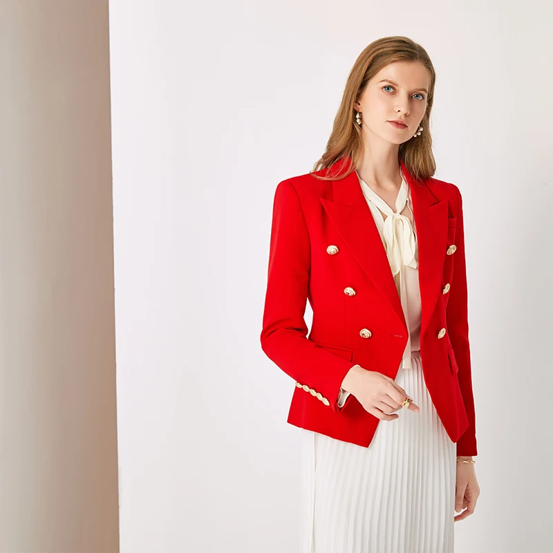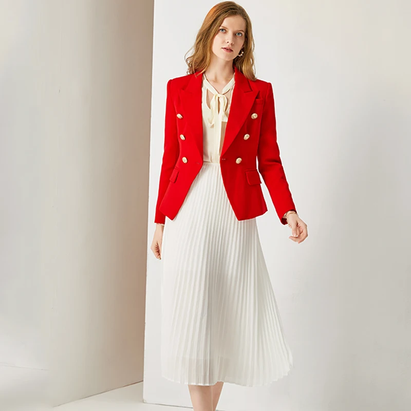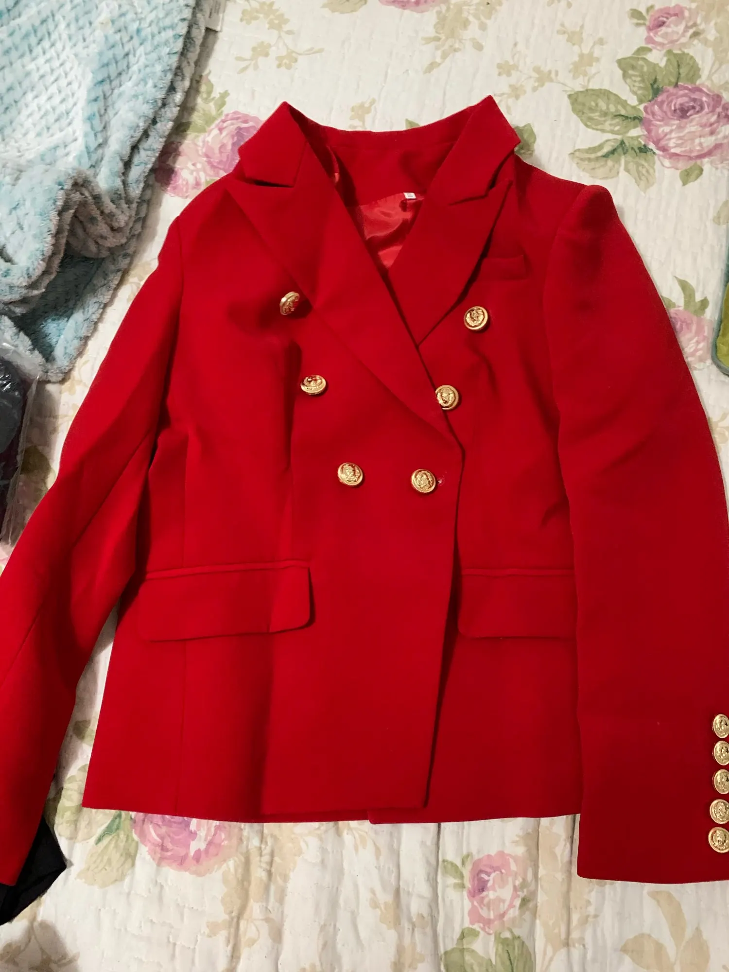 HarleyFashion Европейский Американский Женский Повседневный Блейзер двубортный Высококачественный Красный Блейзер больших размеров
