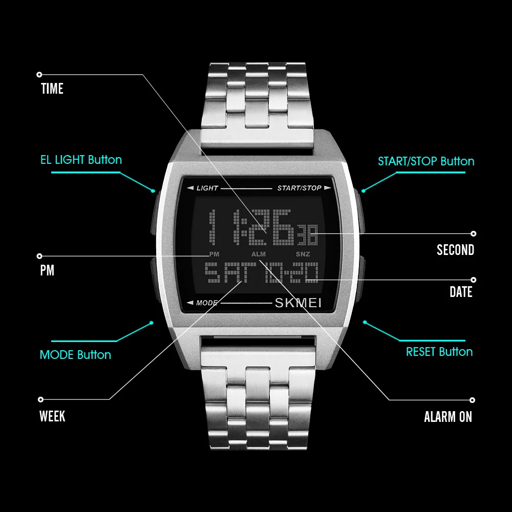 Часы наручные SKMEI Мужские Цифровые, деловые повседневные, из нерж...