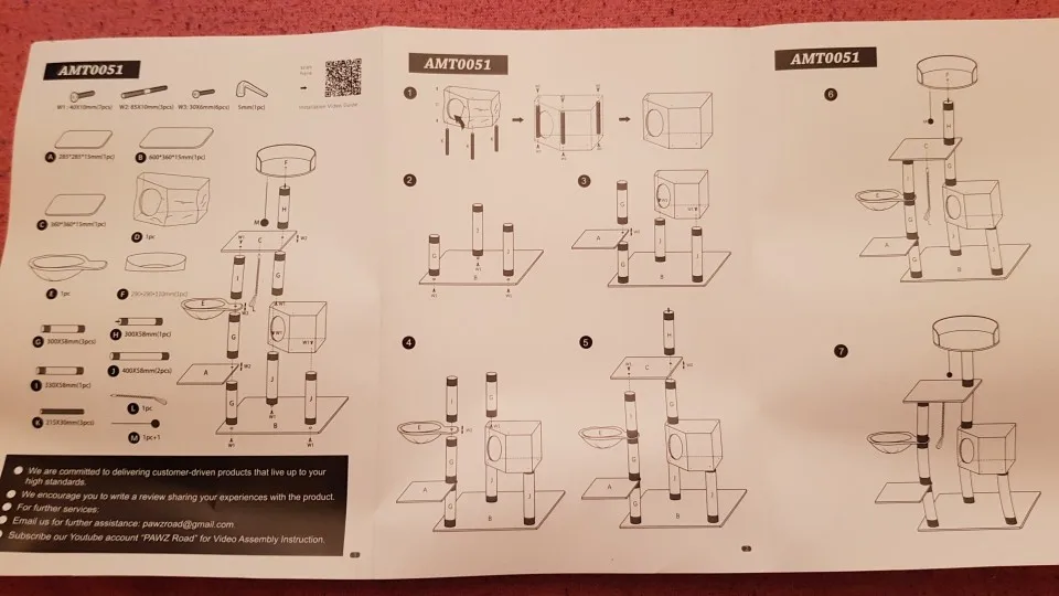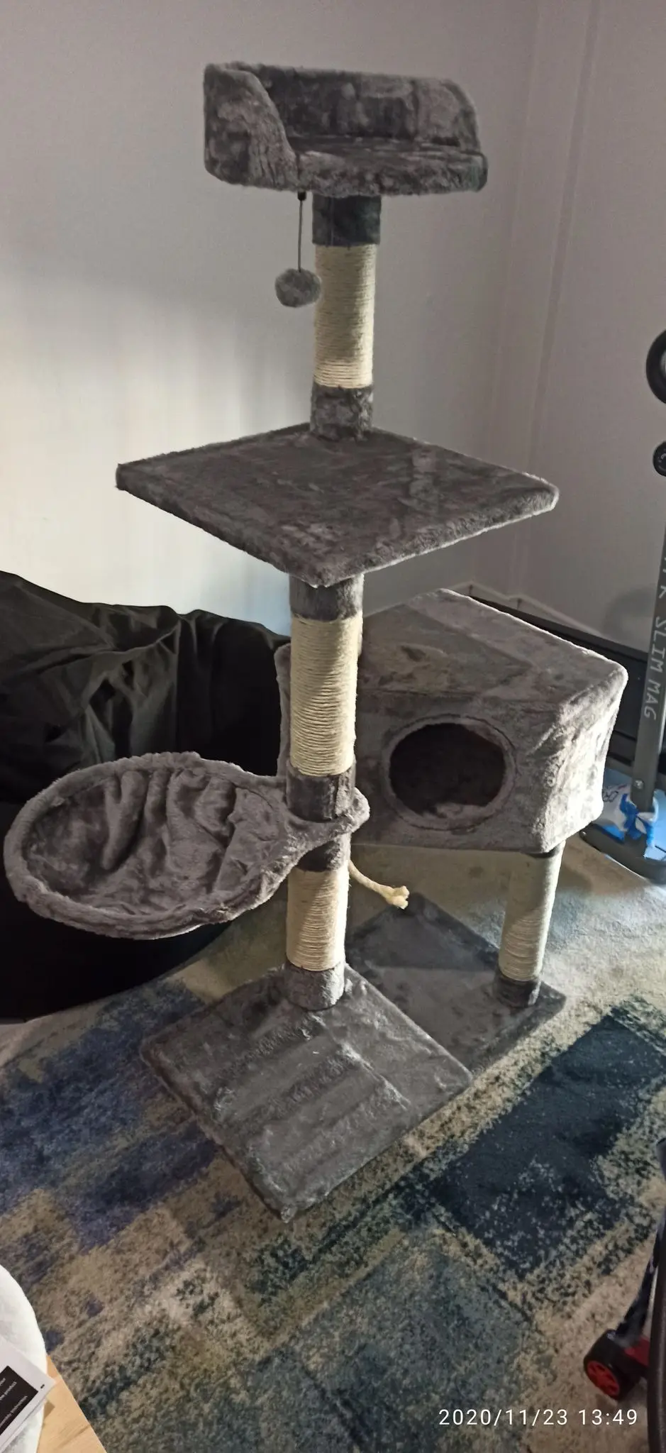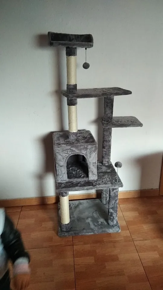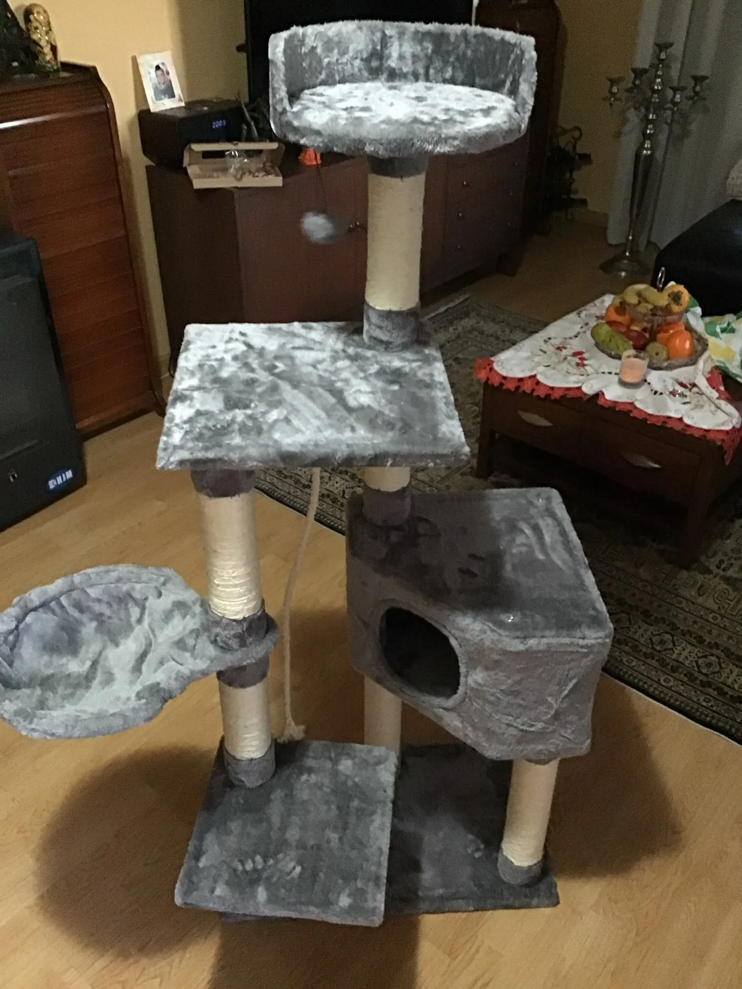 Простая сборка и хорошая отделка. Кошки очень любят корзину. Помимо платформ веревка и подвеска мяча-хороший развлекательный. Arrived earlier Than expected.