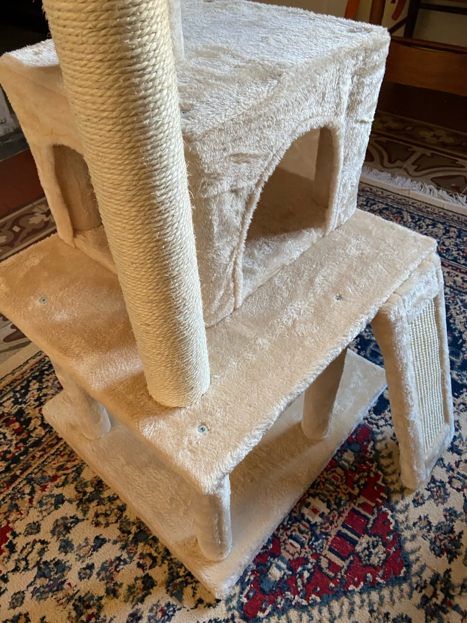 Perfect tower for our 2 kittens, they love it! Assembly was easy, everything needed was included. Be aware, box was HEAVY, had to wait for husband to carry it inside. Very happy with our purchase!