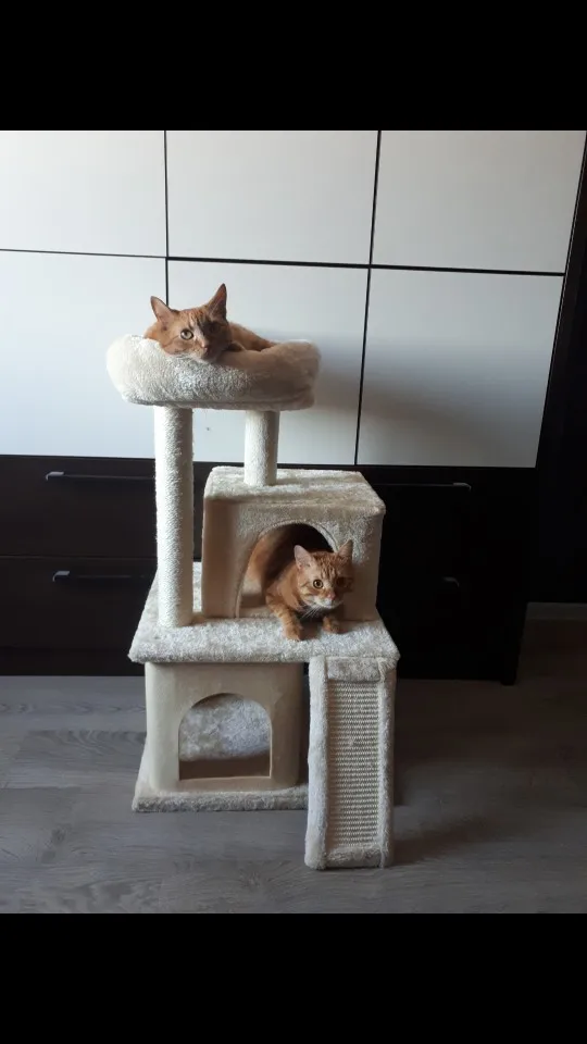 Были проблемы с заказом. Первого заказанного домика не оказалось на российском складе уже после заказа. Предложили другой, другого размера, не подходящего. Отменил заказ, деньги вернули. Заказал еще один, шел две недели с небольшим. Проверяйте наличие перед заказом. Собирался ругаться, но домик оказался действительно хорошим. Собирается легко, все достаточно надежно и аккуратно. Немного шатается, но это стандартно для подобных конструкций. Желательно закрепить к стене. Кошка довольна))))
