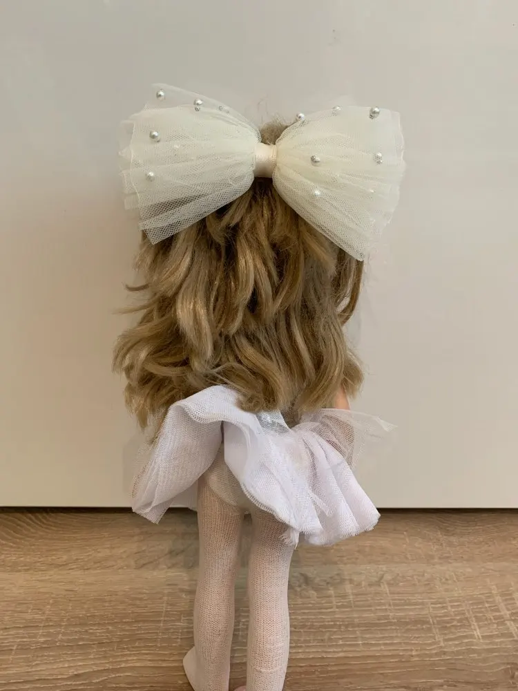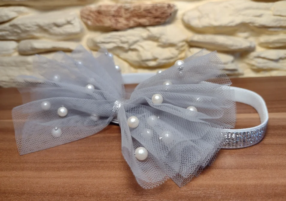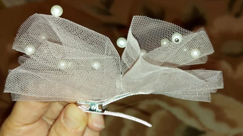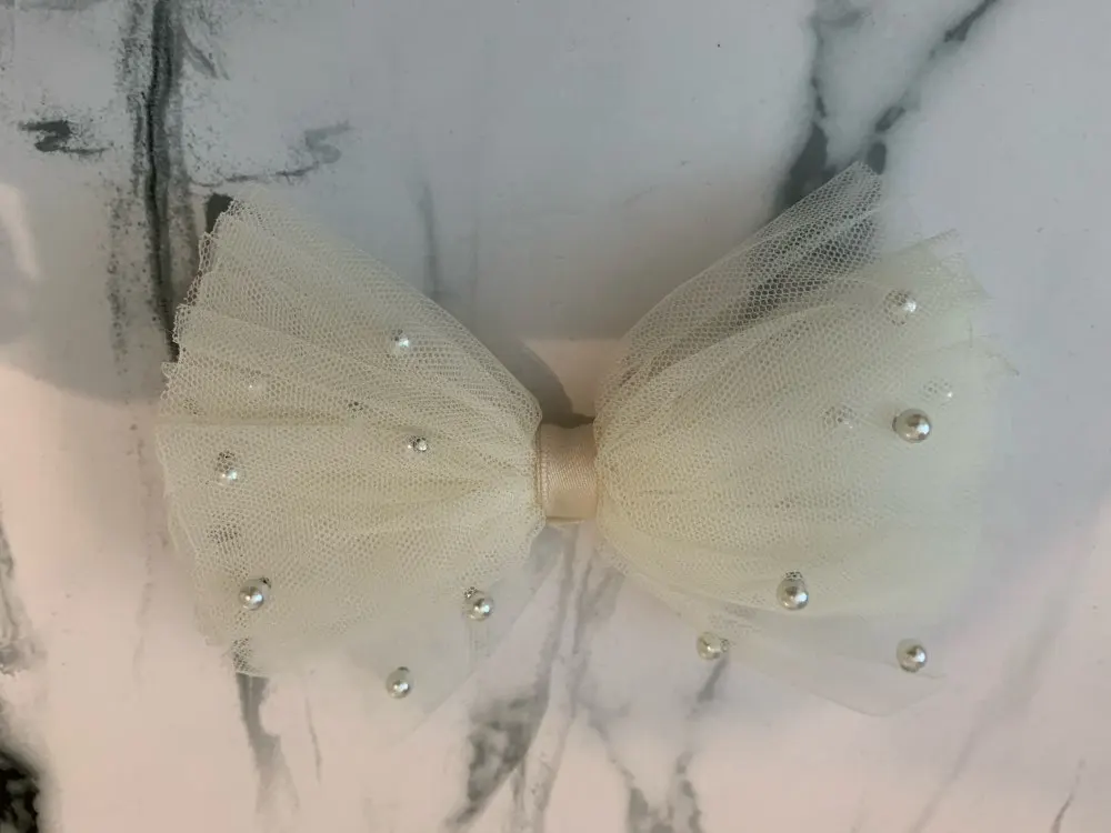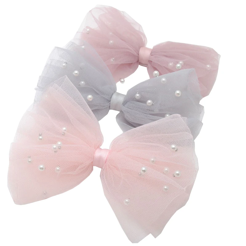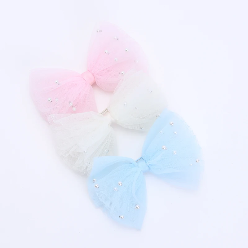 Заколки для волос с искусственным жемчугом, тюлевые, банты, заколки для волос, заколки для волос в виде банта, 5 см, 2 шт.