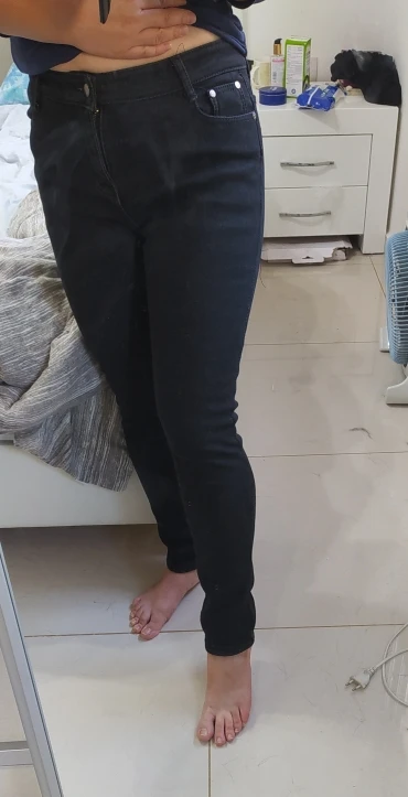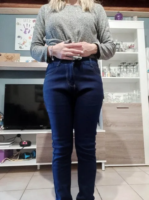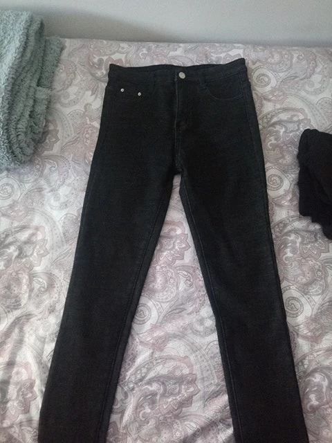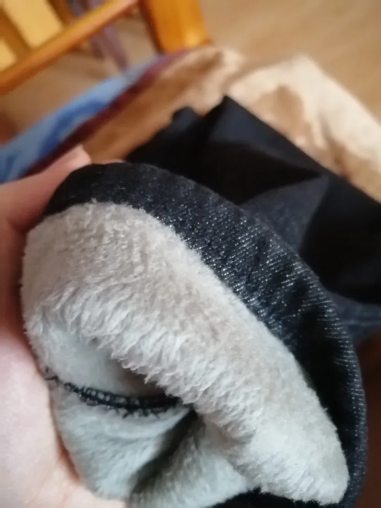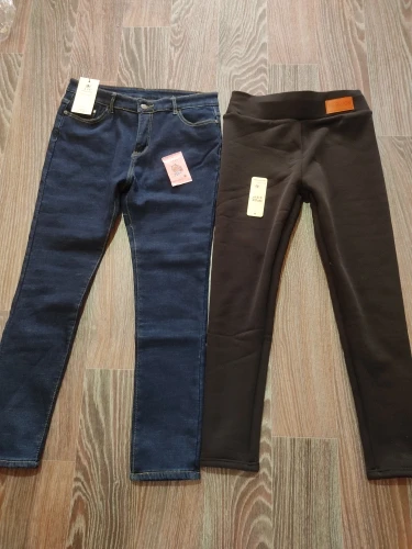 Одни такие джинсы я уже относила. И вот решила взять снова. Всё бы хорошо, вроде и по размеру - на 84х104 взяла 34 размер, он почти нормально. Но у меня толстоватые ляжки, 60 см в толстой части под попой. И джинсы оооочень сильно облегают и не тянутся. Сесть невозможно. Носить не смогу. С предыдущими такого не было... Цвет серый темнее, чем на фото продавца, но светлее, чем на моих фото. На рост 165 длина если в ботинки, нормальная. Утепление на минскую зиму нормальное. Колготки не ношу вообще. На минус 5 ещё тепло. В минус 10 будет холодновато.