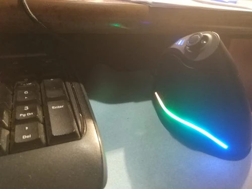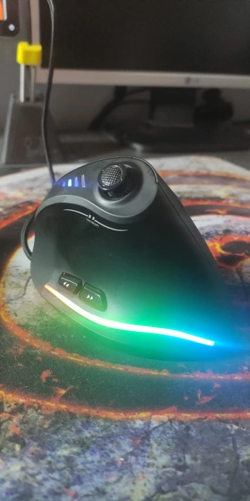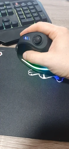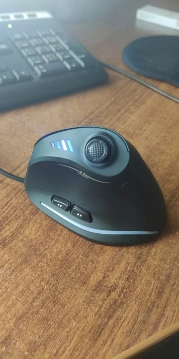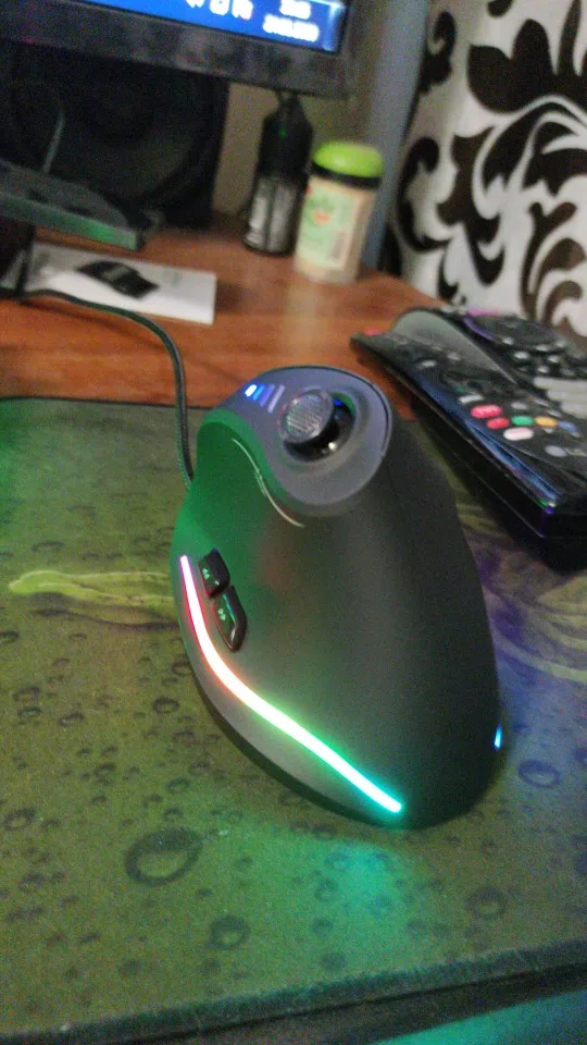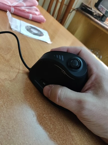 Как то побаливало запястье,стал присматриваться к вертикальным мышкам.Эту выбрал за кол-во доп кнопок и точность.Скачал дрова,настроил кнопки под себя(предпоследний пункт в меню).В руку легла удобно.Курсор двигается так же,как на обычной,привыкать не пришлось. Джойстик сверху по сторонам двигается без щелчков, как аналоговый,но забитые кнопки находит)), только нажатие сверху туговато.Точность хорошая,можно и играть и Моделить в Зд. Есть настройка освещения и тд. Советуют при вертикальных мышках, чтоб локоть опирался на стол,плечо не устаёт.Проверим.