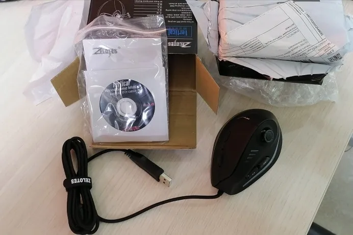 Пришла быстро,ни чего не повреждено,в комплекте идет диск с драйверами,в руку легла удобно,но вот к джойстику привыкнуть надо и мизинец по коврику кататься будет,в комплекте еще сменные ножки и если у кого мышка не катается по коврику,снимите защитную пленку на ножках,если будут проблемы дополню отзыв, кстати мышка Zelotes.