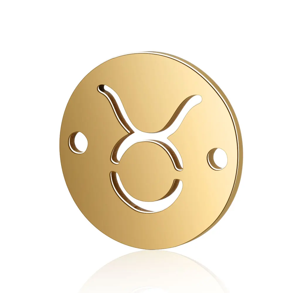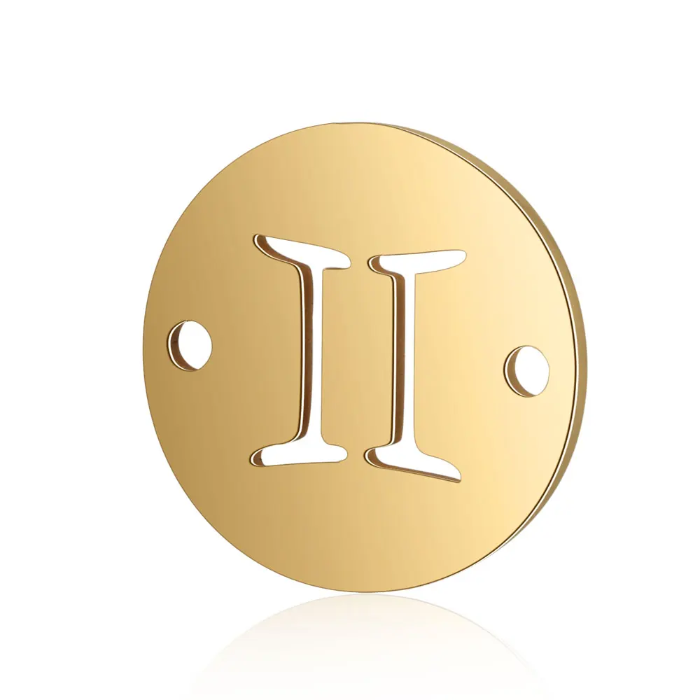 12 мм Золотые круглые подвески зодиака 12 созвездий с двумя отверстиями DIY соединители для браслетов 10 шт.лот