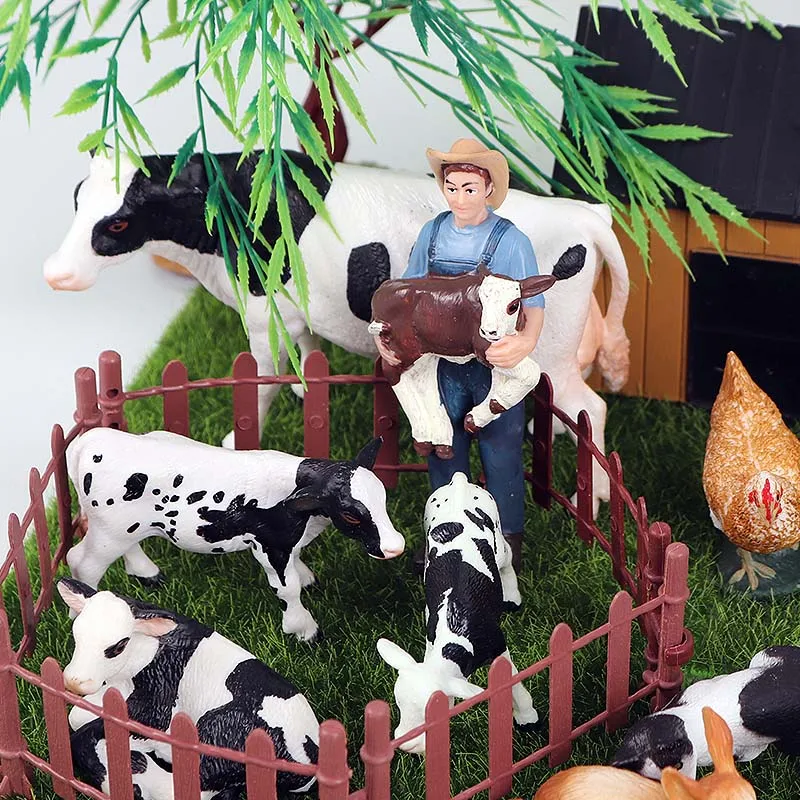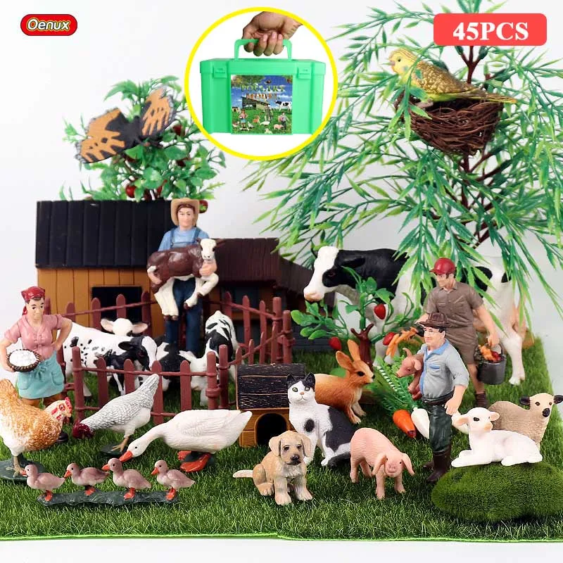 Особенности: Oenux 45 шт., модель зоопарка, ферма, фигурки, фермер, корова, курица, птица, статуэтки животных, миниатюрная милая игрушка для детей, подарок на день рождения