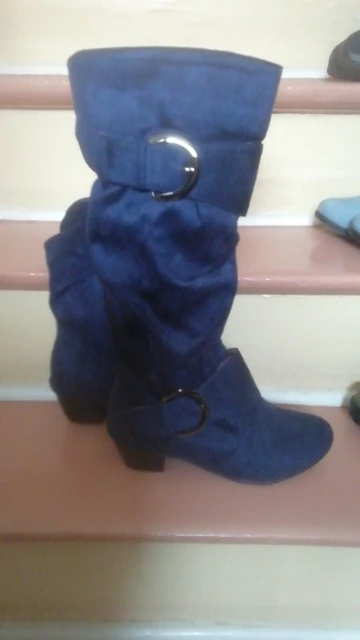 Женские сапоги из флока, на низком каблуке, с пряжкой и ремешком, Р...
