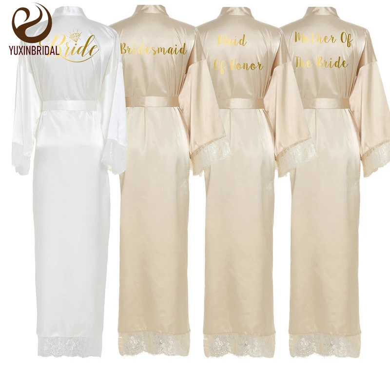 Новинка 2021, шелковые атласные кружевные халаты, белый халат подружки невесты, халат подружки невесты, свадебные длинные халаты, Халат