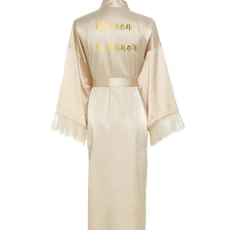 Шелковый атлас кружевной халат подружки невесты Robe Платья для под...