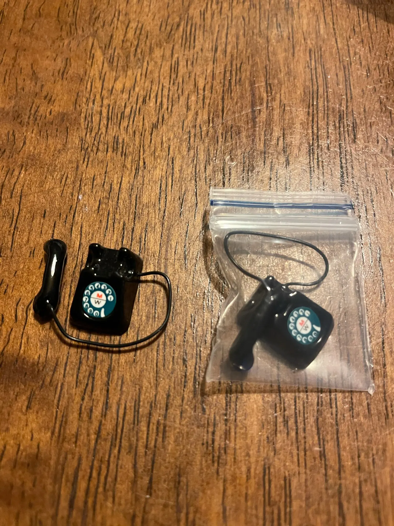 Хороший телефончик, красивый, аккуратно сделан, но очень маленький. Прям вот очень. 1,4см. Мне не подходит. Я думала он больше. Размер то продавец благополучно не указал! Для сравнения: сковородка, тостер и бидон так же формата 1\12, но посмотрите на сколько этот телефончик меньше. Он просто крошечный!