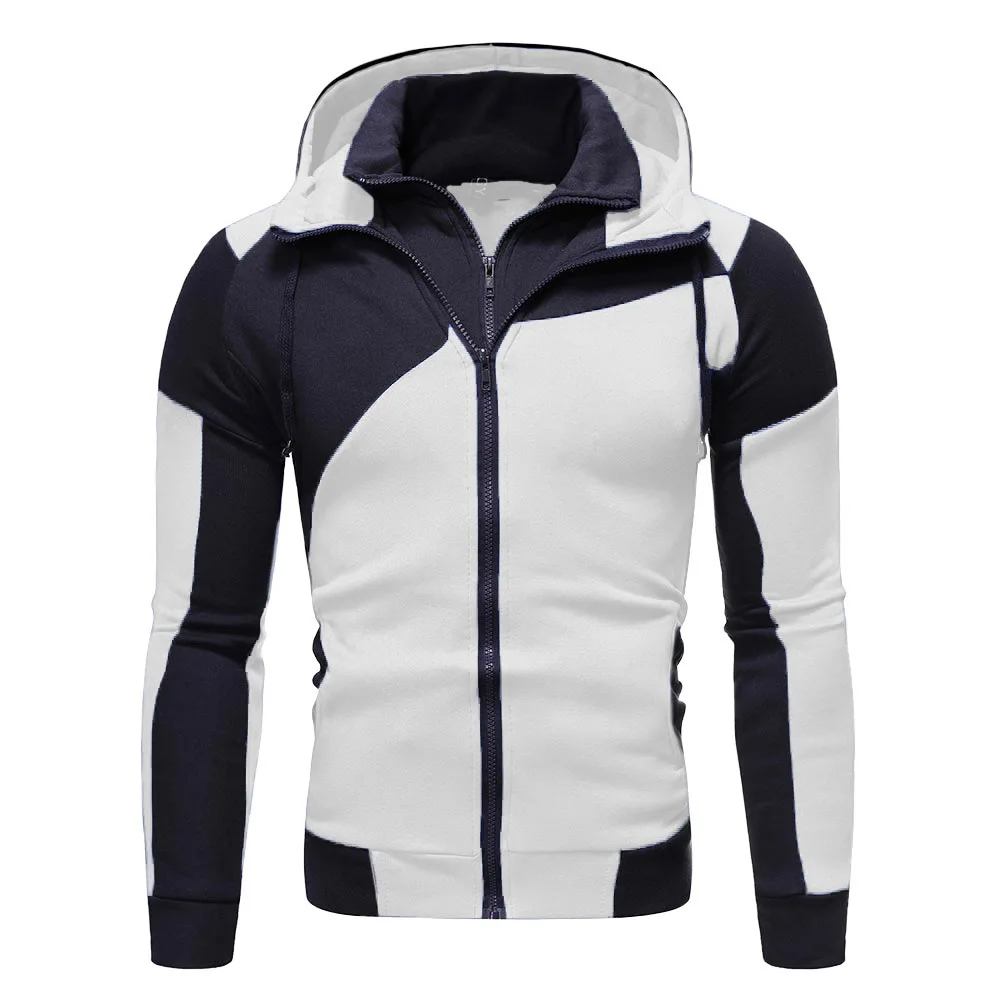 Мужские толстовки с капюшоном, осенне-зимняя новая Повседневная Толстовка с капюшоном на двойной молнии в стиле пэчворк, мужская приталенная толстовка с капюшоном, кардиган, уличная одежда