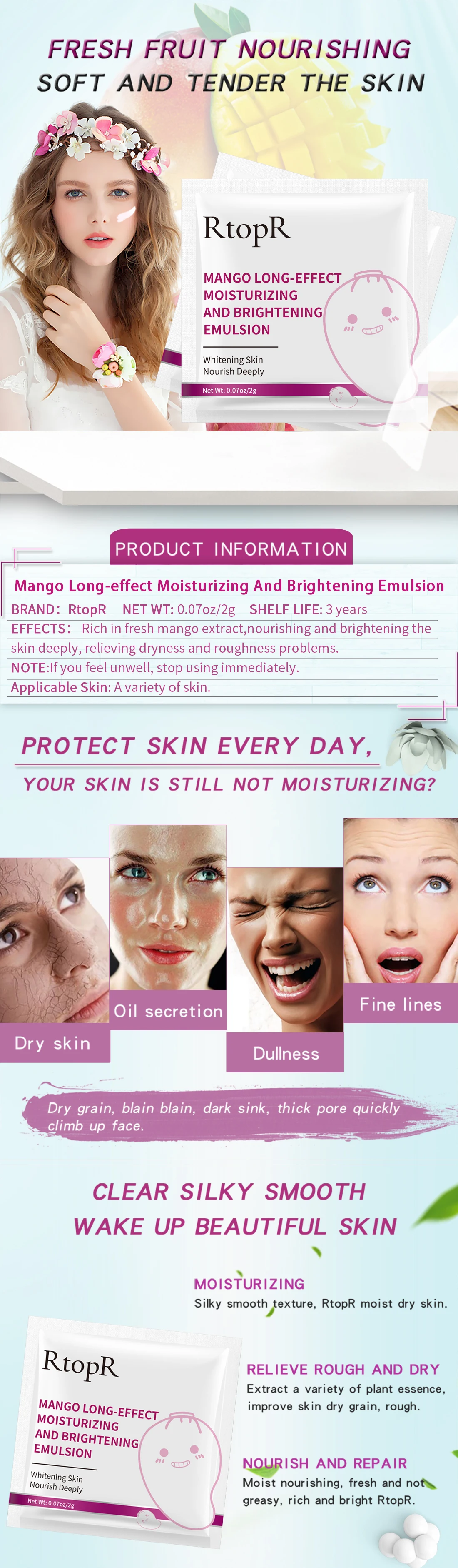 Богатый свежим экстрактом манго, натуральный мягкий гладкий и питающий кожу, немного впитывает влагу, избавляет от сухости, грубой кожи изнутри и снаружи, многократное восстановление питает, пополняйте достаточное количество влаги и питательных веществ, защищая, осветляя кожу, двойной уход, делая кожу мягкой и нежной.